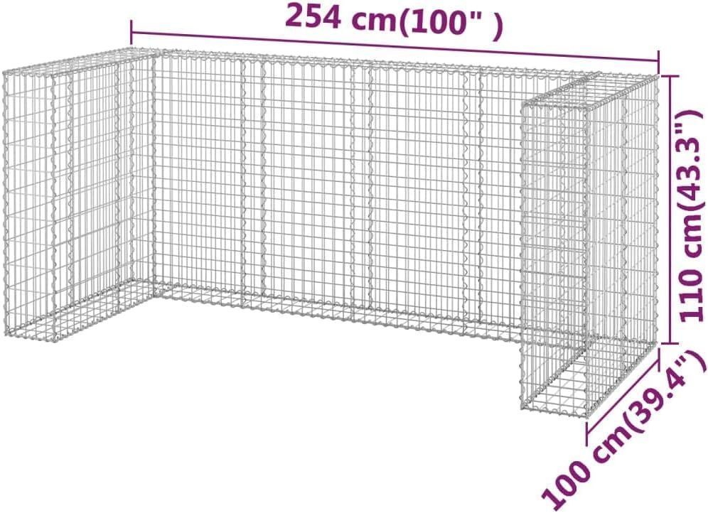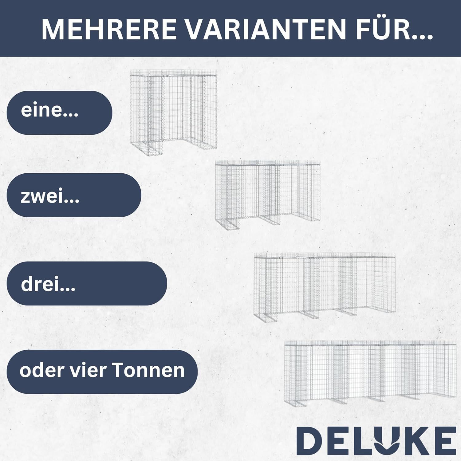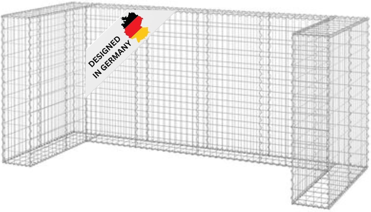 3er Gabionen Mülltonnenbox ESOL 110x254x100cm Mülltonnenverkleidung für 3 Tonnen