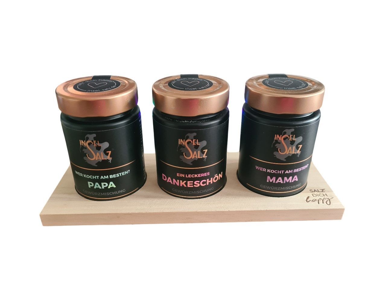 3er Gewürzmischung Dankeschön , Mama und Papa kochen am besten incl. Eichenbrett