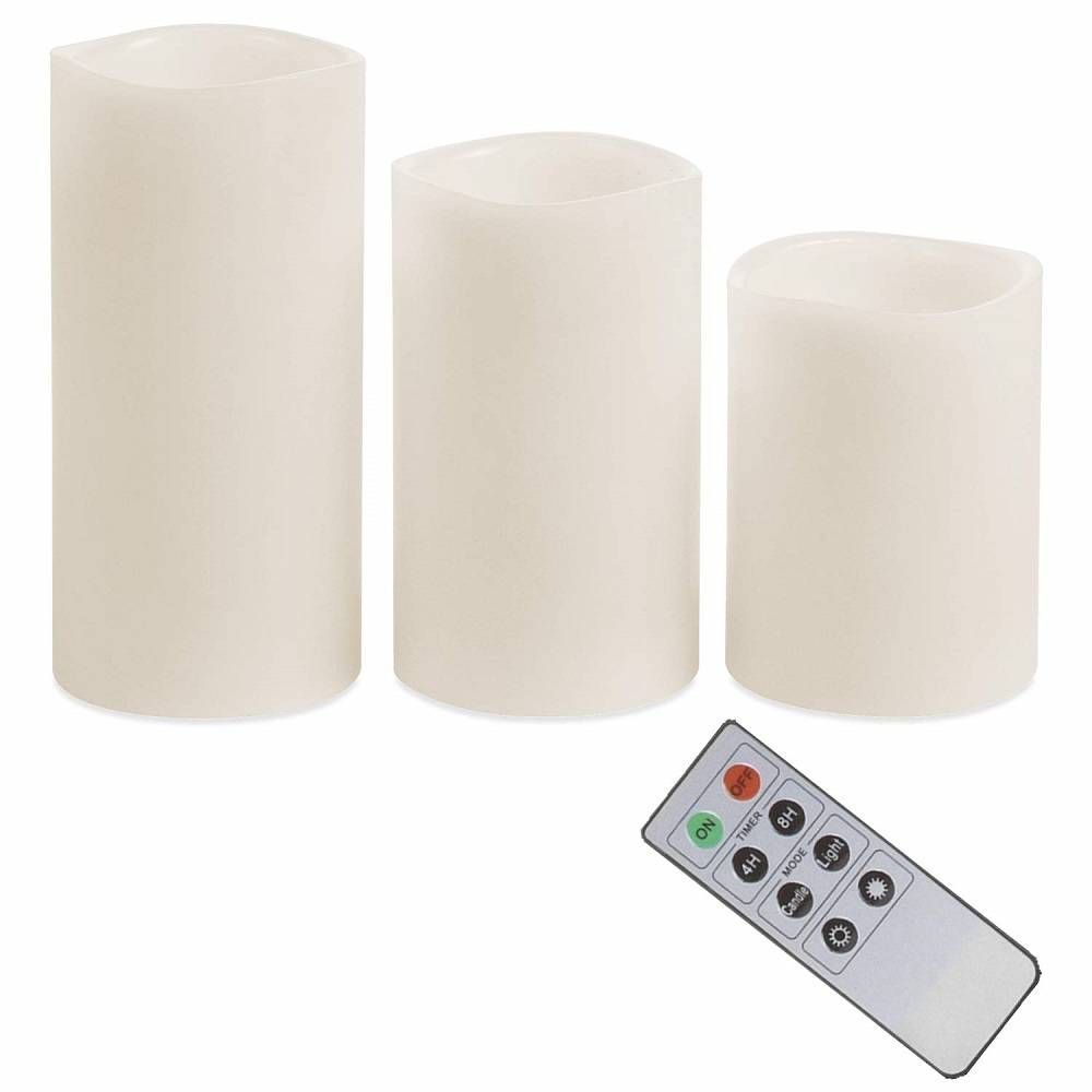 3er LED Echtwachs-Kerzen-Set Flammenlos mit Timer 7,5x10/12/15cm ACA202000