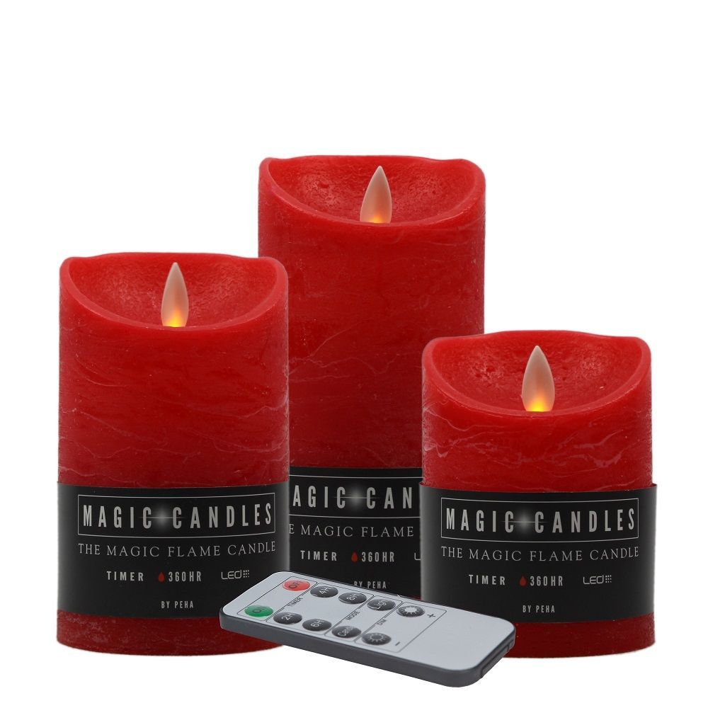 3er LED Echtwachskerzen Set rot FB Timer Dimmer Flackermodus MB-20124