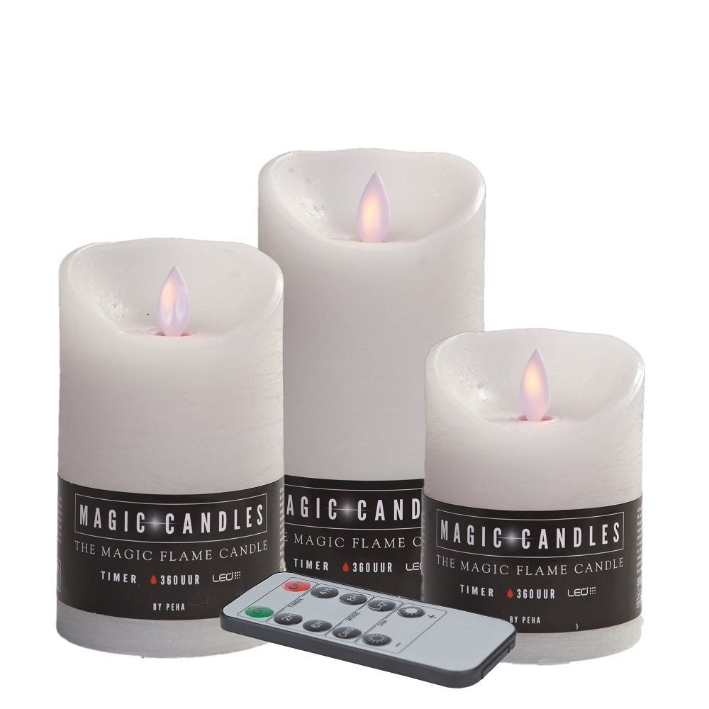 3er LED Echtwachskerzen Set weiss FB Timer Dimmer Flackermodus MB-20104