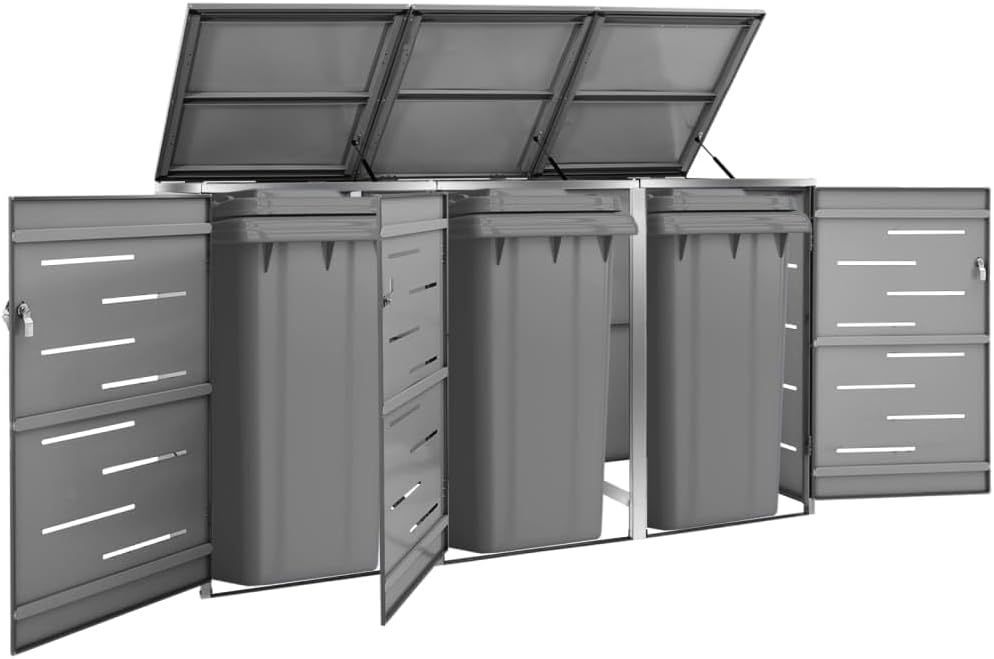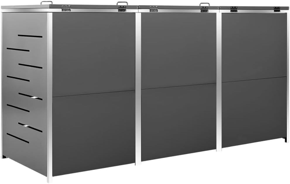 3er Mélltonnenbox JAGU Edelstahl Anthrazit 115x207x77,5cm Mélltonnenverkleidung fér 3