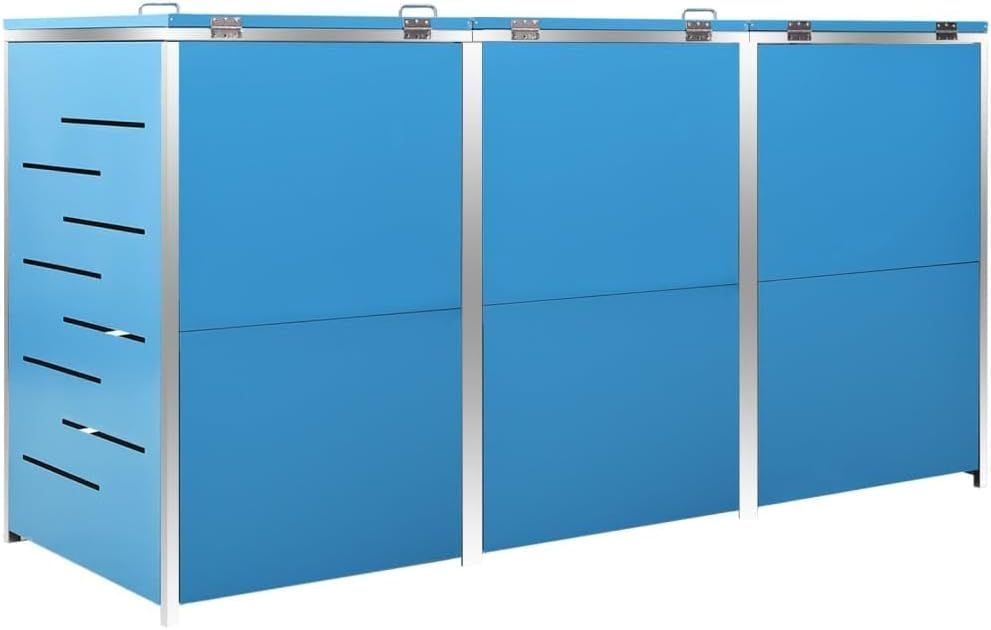 3er Mülltonnenbox JAGU Edelstahl Blau 115x207x77,5cm Mülltonnenverkleidung für 3
