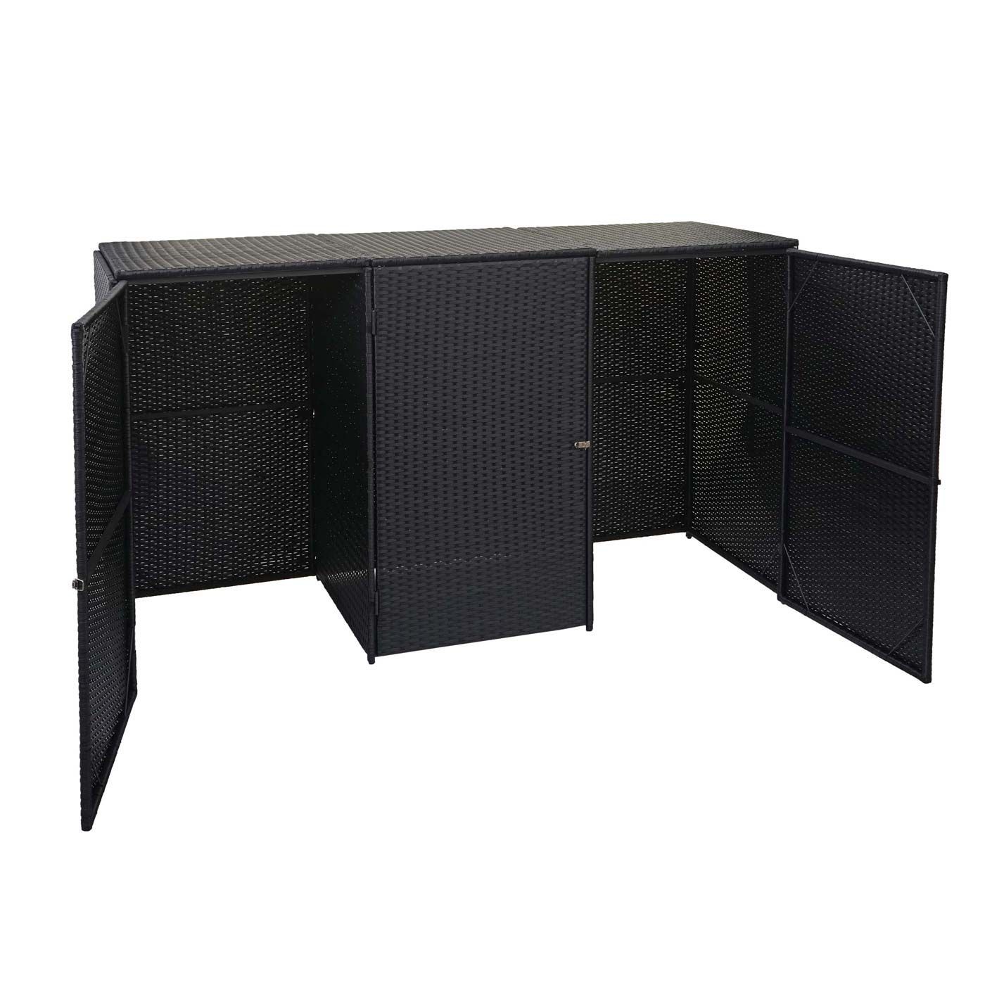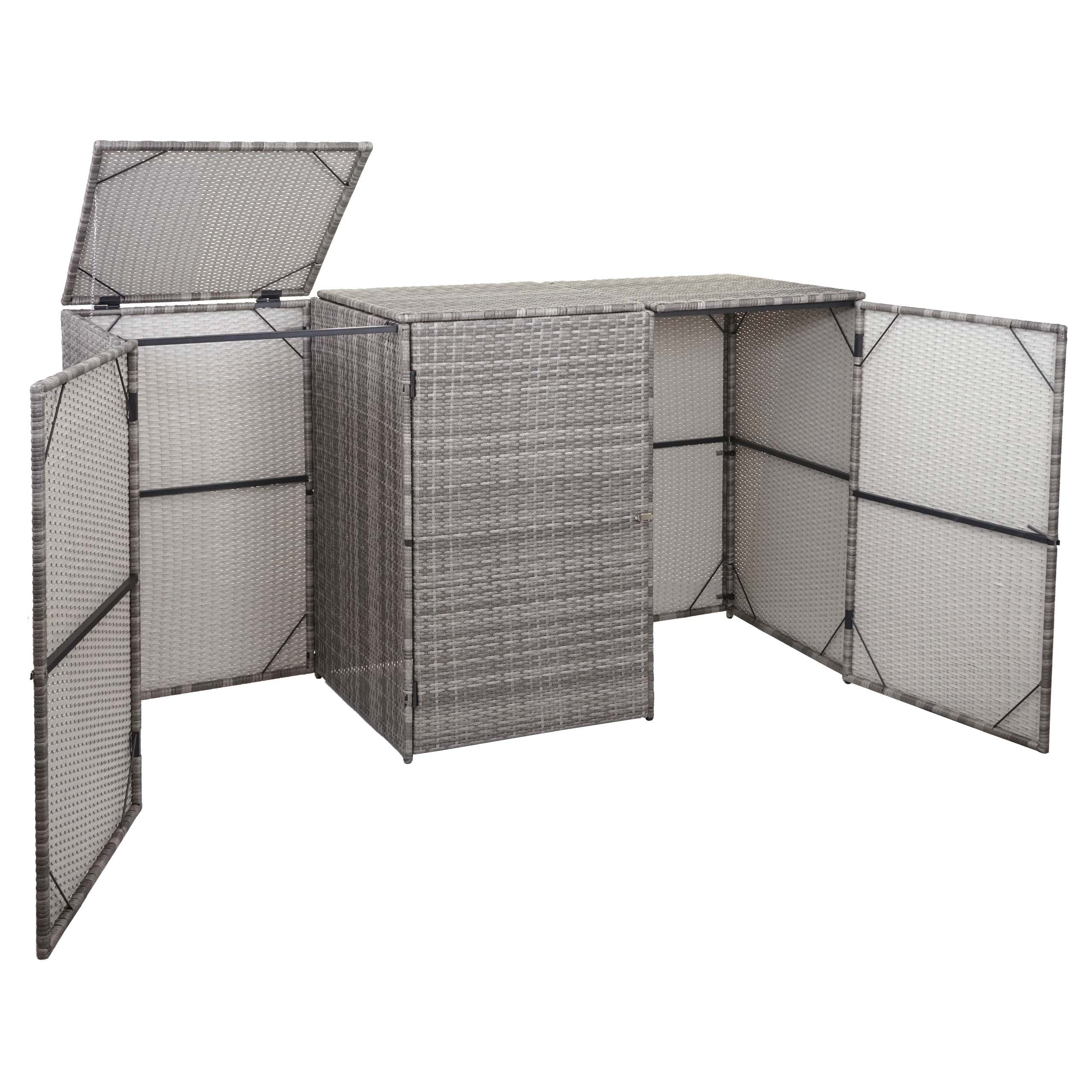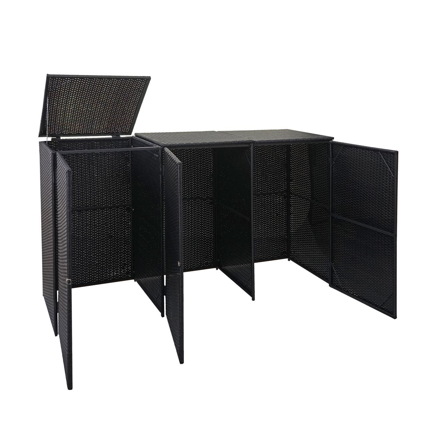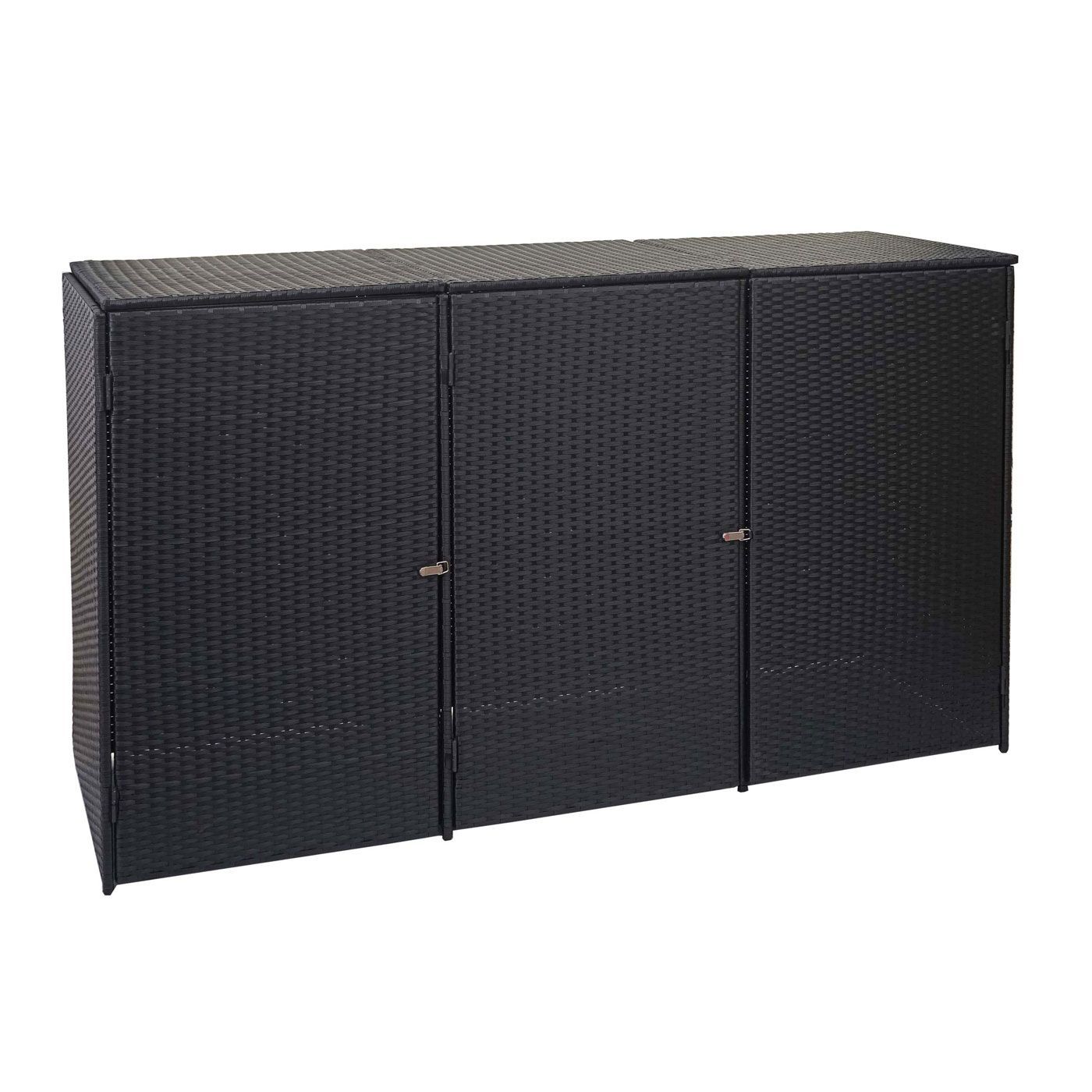 Mendler 3er-Mülltonnenverkleidung HWC-E25, Mülltonnenbox Mülltonnenabdeckung, Poly-Rattan