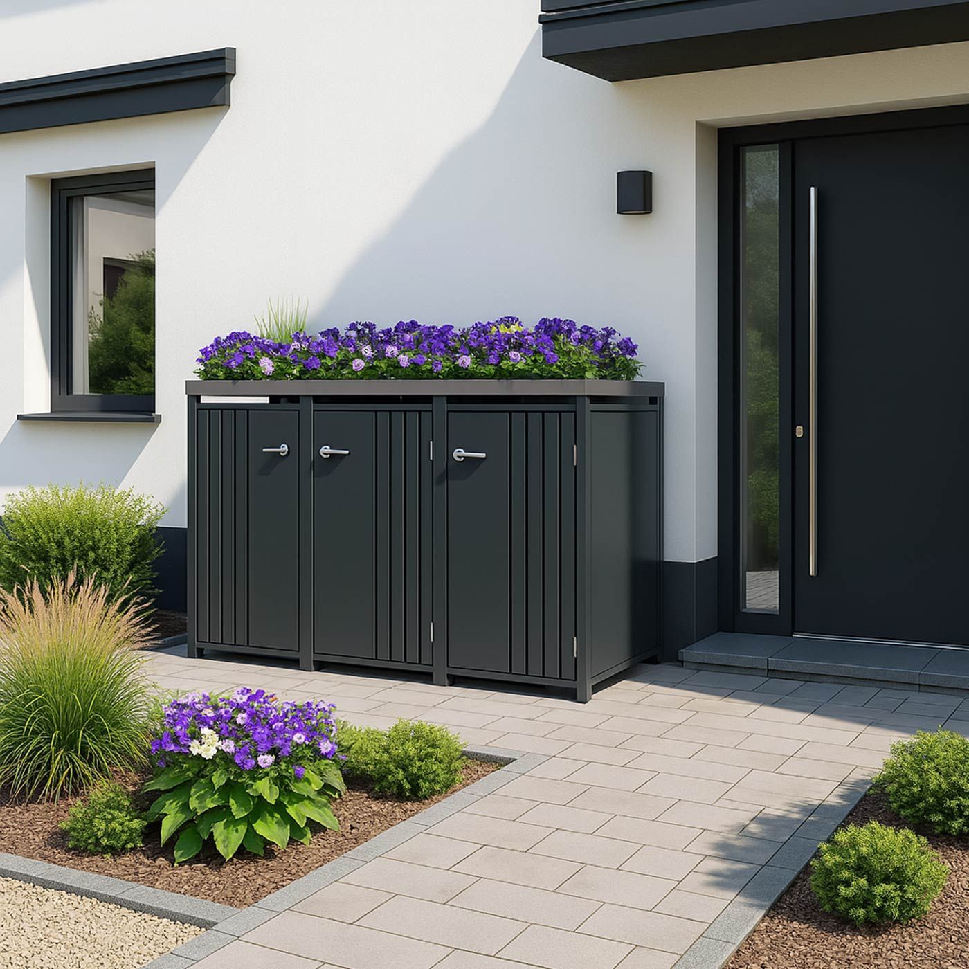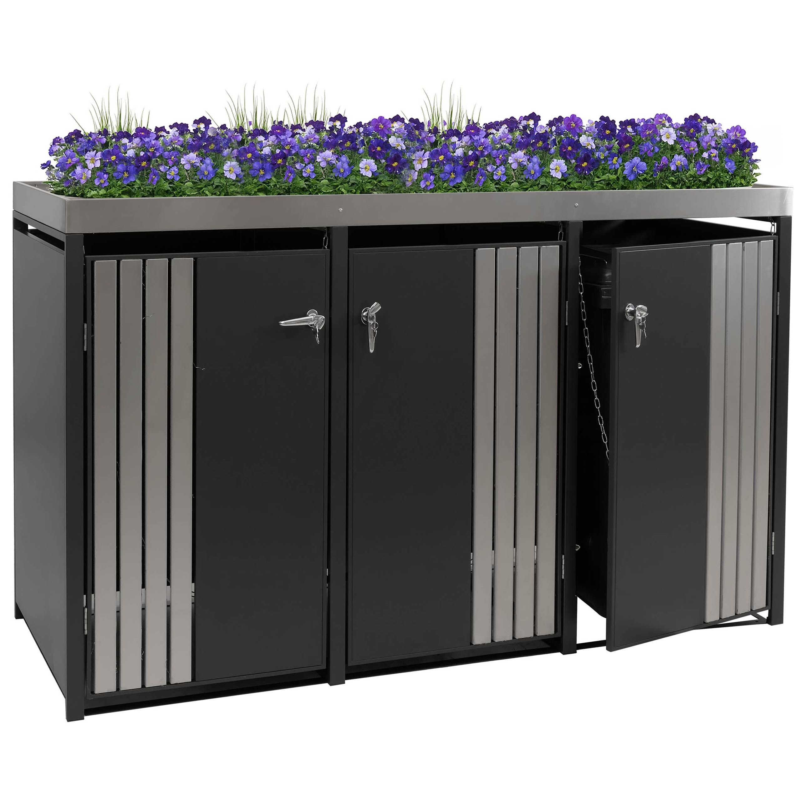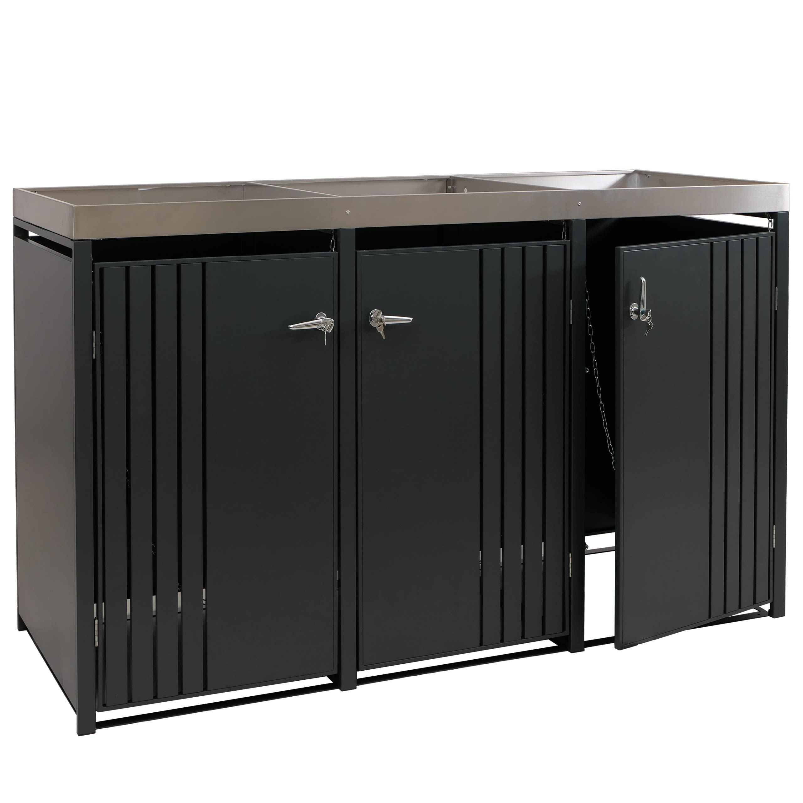 Mendler 3er-Mülltonnenverkleidung HWC-O67, Mülltonnenbox Pflanzkasten, Metall 125x196x84cm