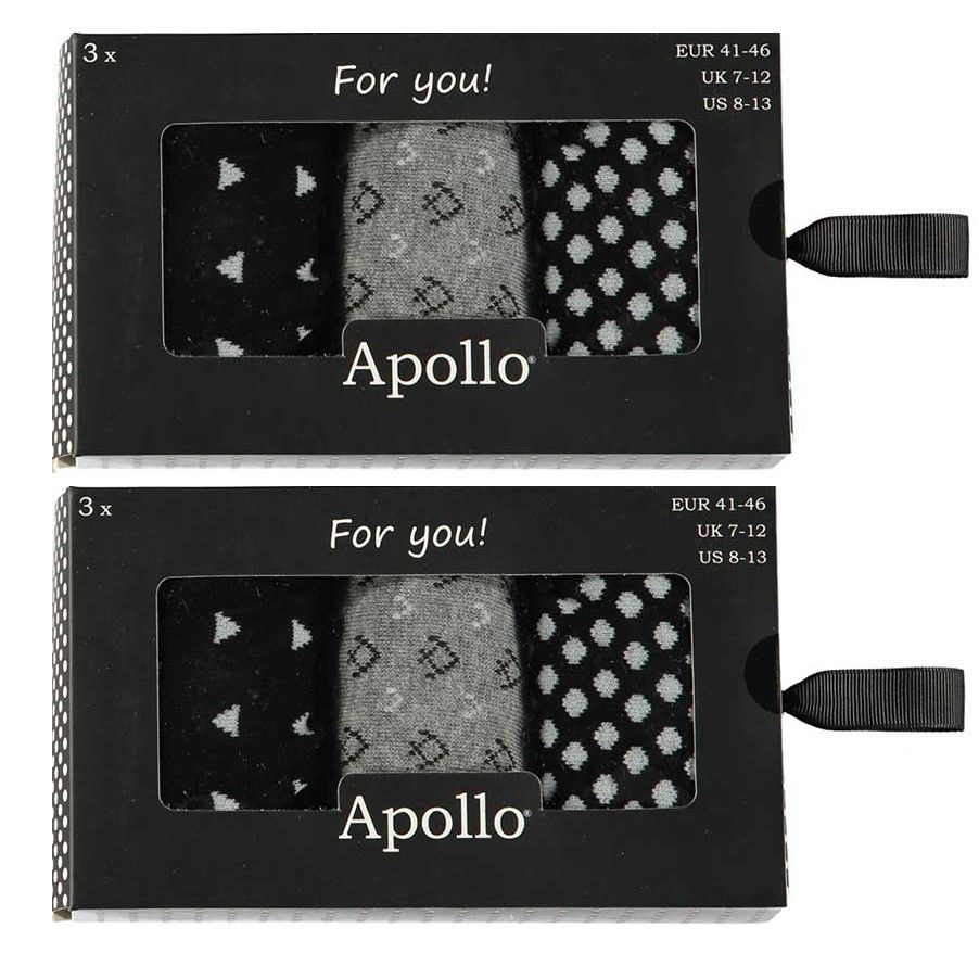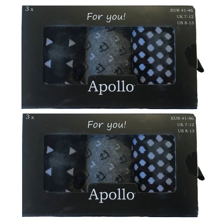 Apollo 3er Pack Apollo Herren Socken in Designer Geschenkbox Navy Gr. 41-46 Schwarz / Grau