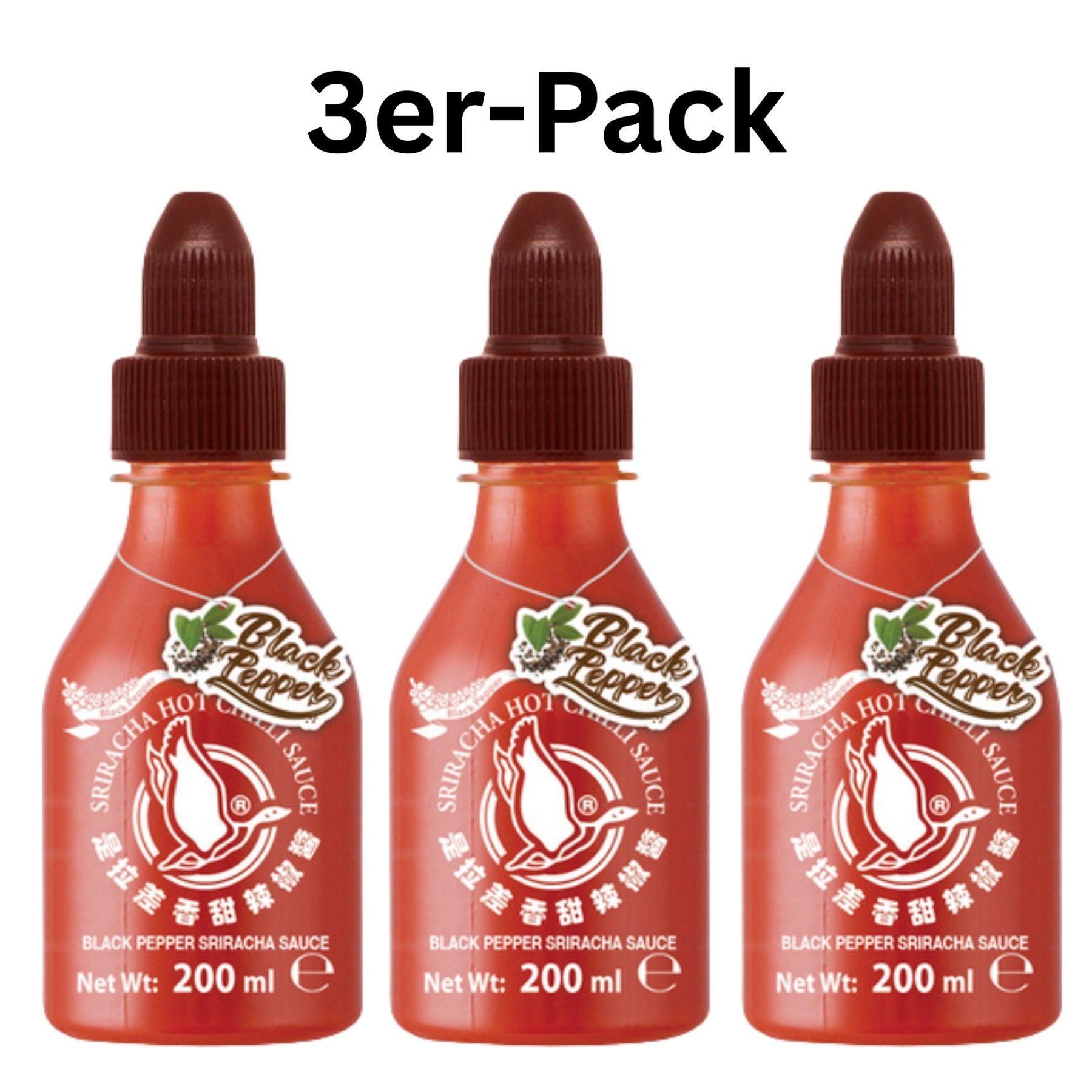 3er-Pack Flying Goose Sriracha Chilisauce Schwarzer Pfeffer 200ml