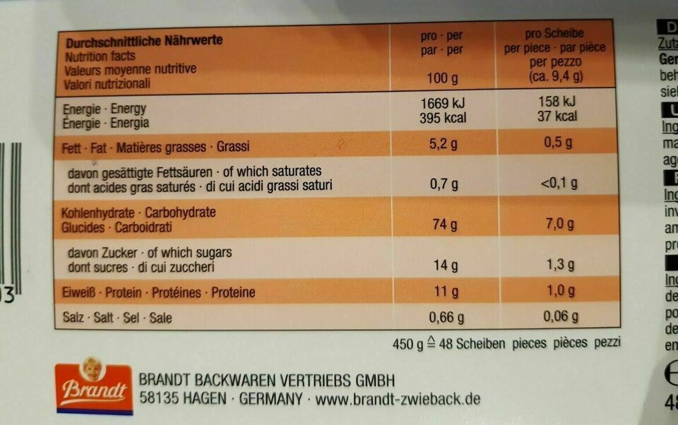 Brandt 3er Pack Orig. Brandt Markenzwieback Zwieback Frühstückzwieback 3x48 Stück 1350g