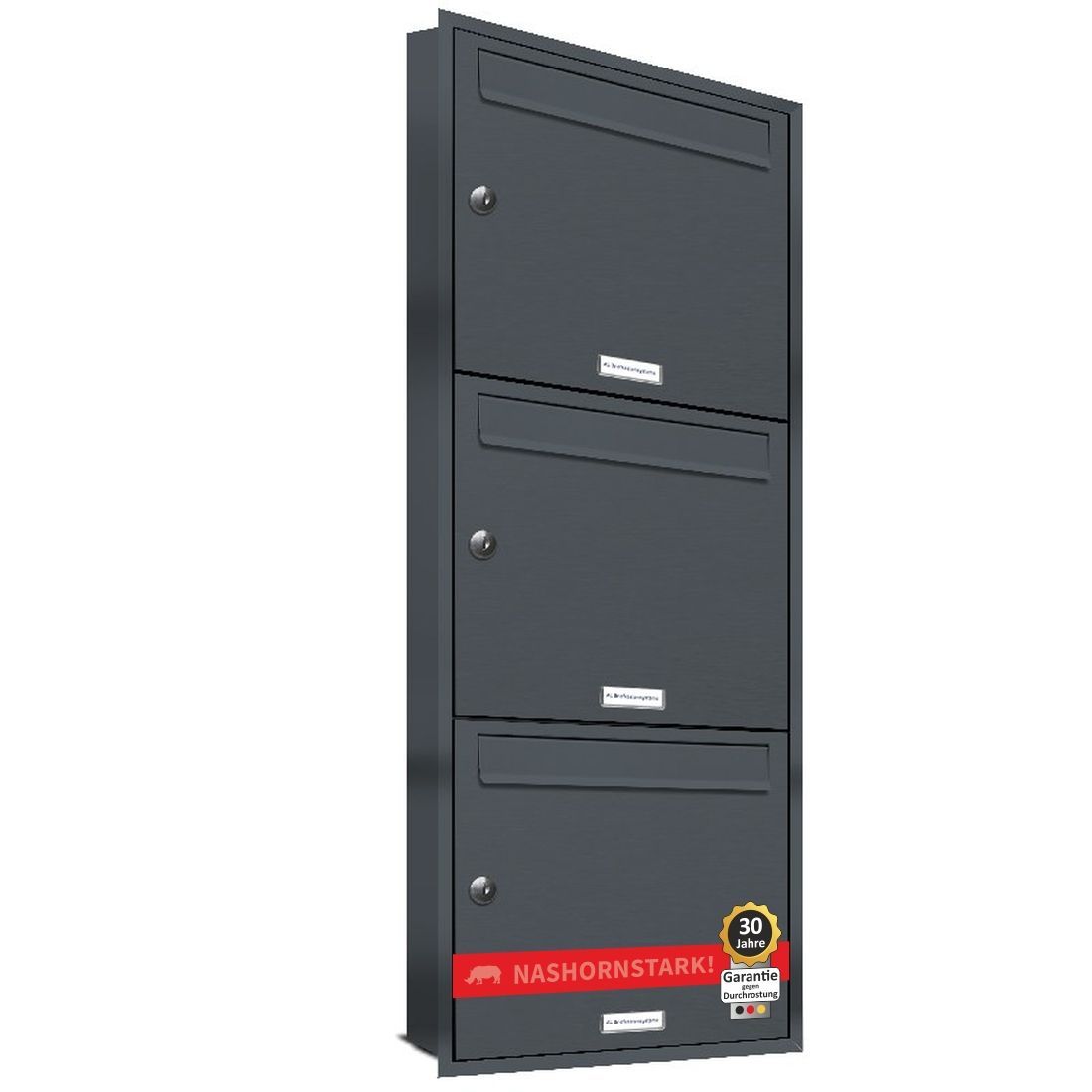 3er Premium Briefkasten Anthrazit RAL 7016 Unterputz Anlage Postkasten 1x3 S