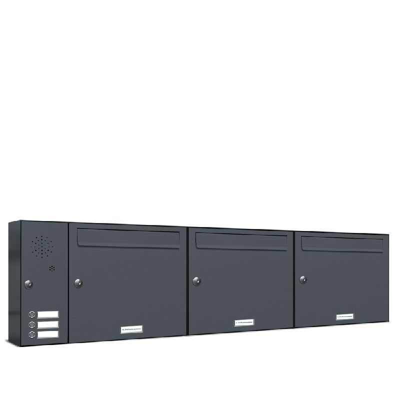 3er Premium Briefkasten Außen RAL Farbe 7016 Klingel Links Postkasten 3x1