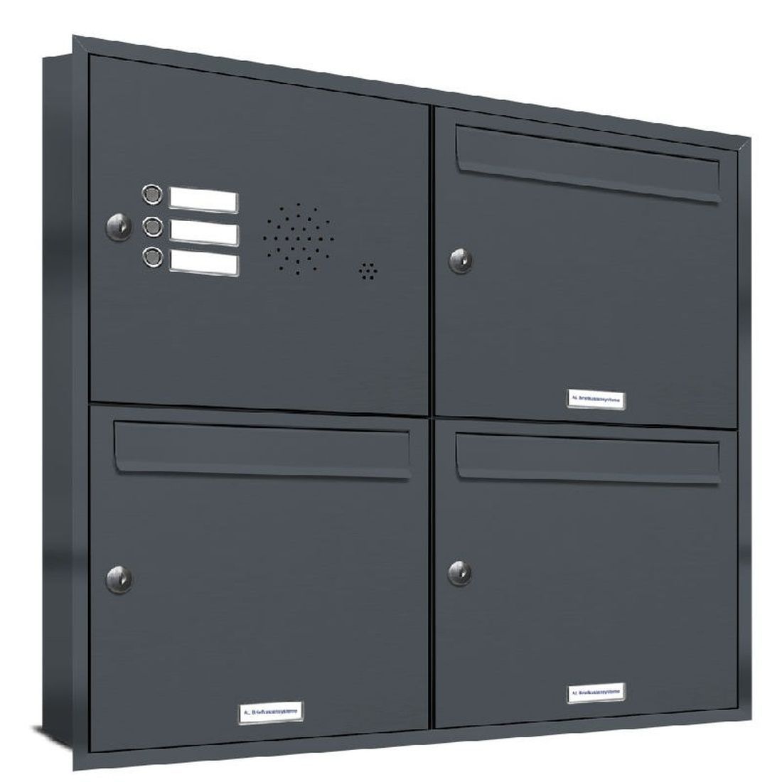 3er Premium Briefkasten Unterputz Anthrazit mit Klingel Postkasten 2x2 S