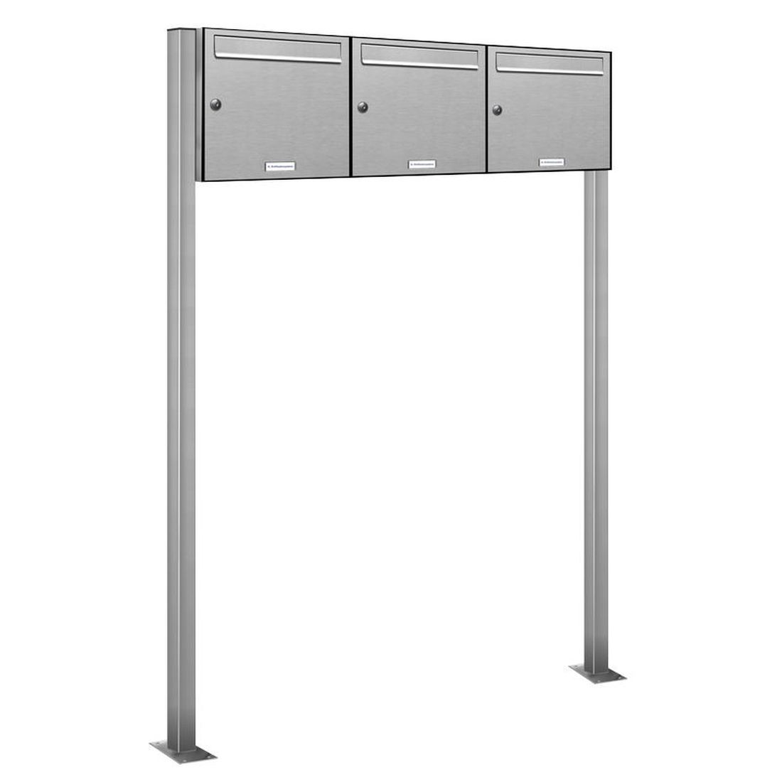 3er Premium Standbriefkasten Edelstahl Anlage freistehend Postkasten Ständer 3x1