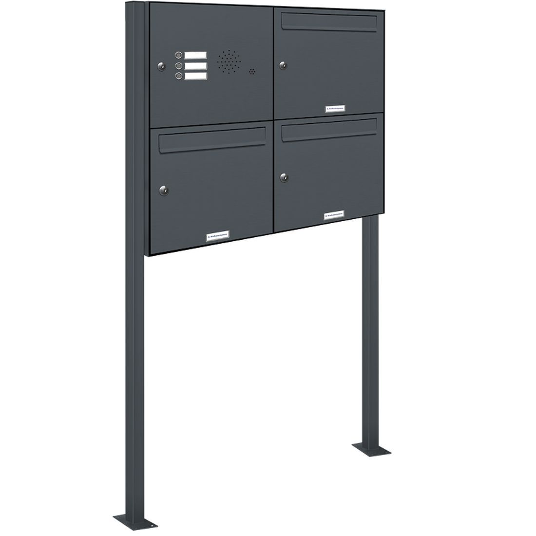 3er Premium Standbriefkasten mit Klingel RAL 7016 Postkasten Ständer 2x2