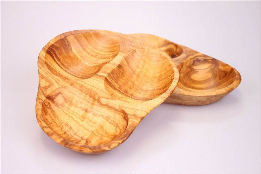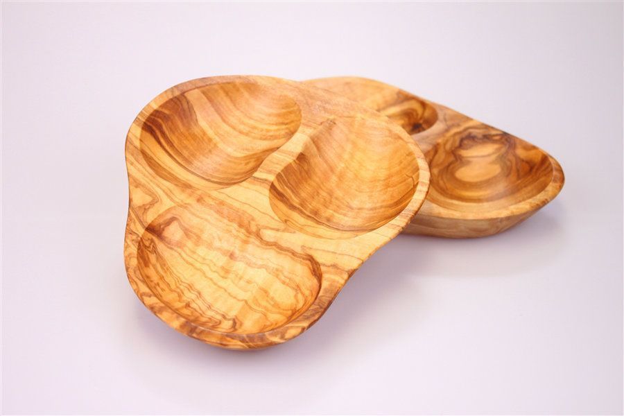 3er Schale Dipschale aus Olivenholz 3er Fach Holzschale Olivenschale Nußschale