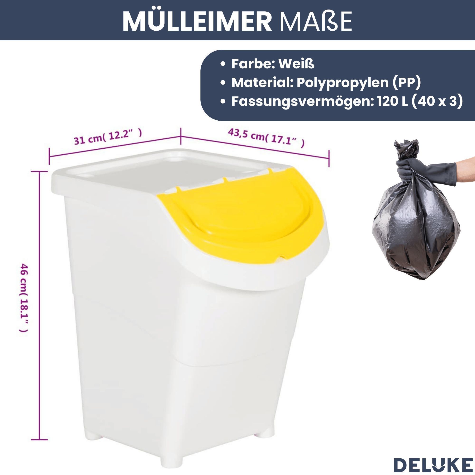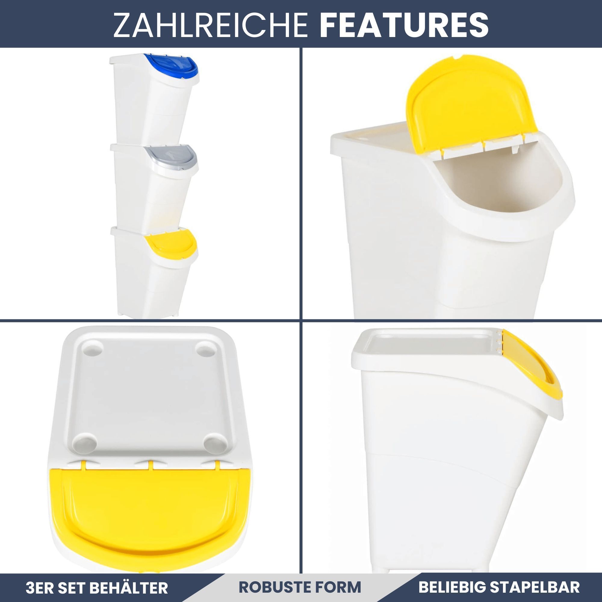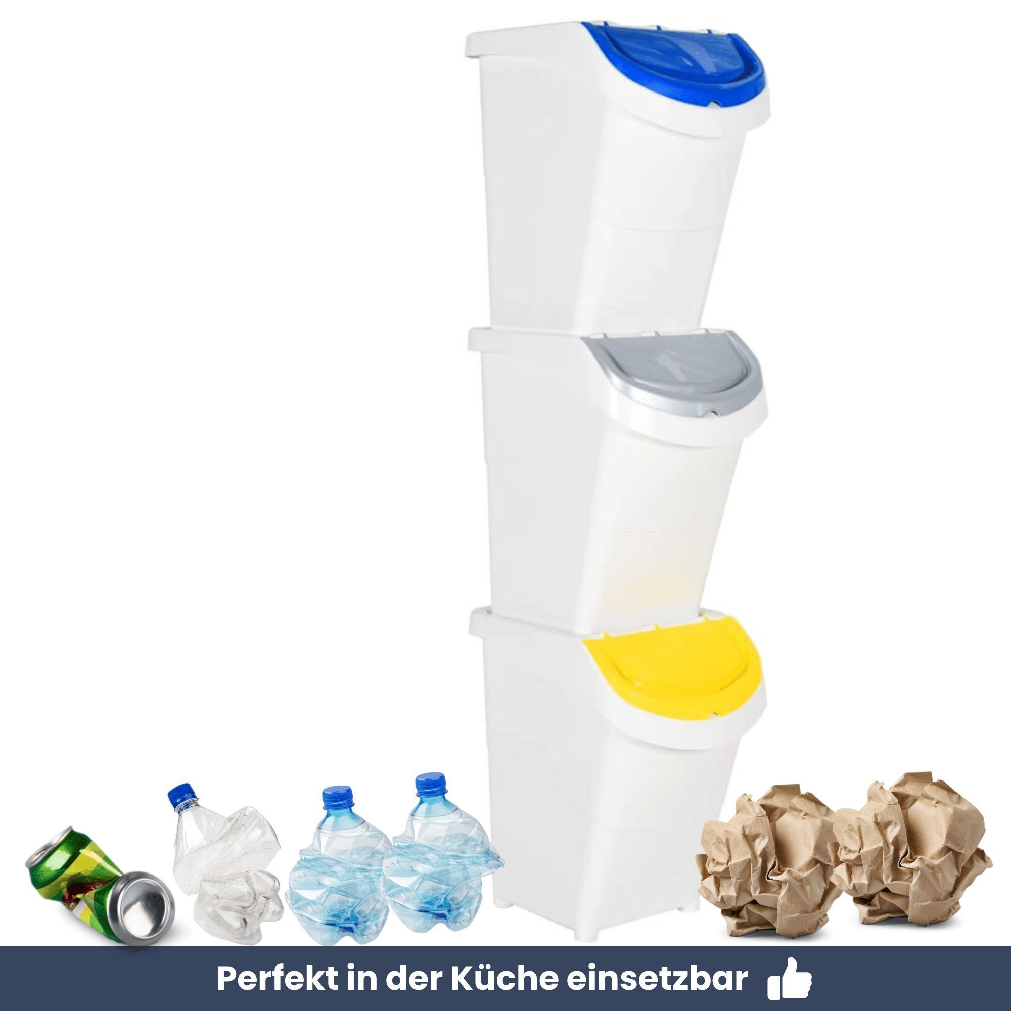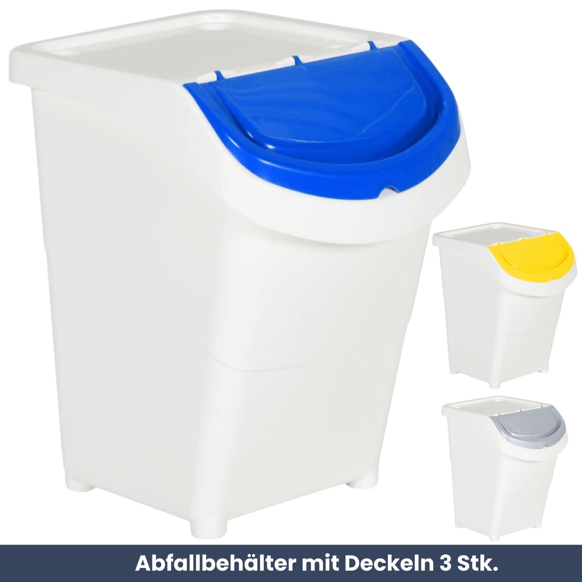 3er Set Abfallbehälter Deckeln 3x40L Stapelmülleimer Abfalleimer Küche Mülleimer 3