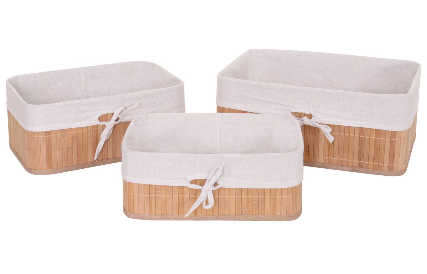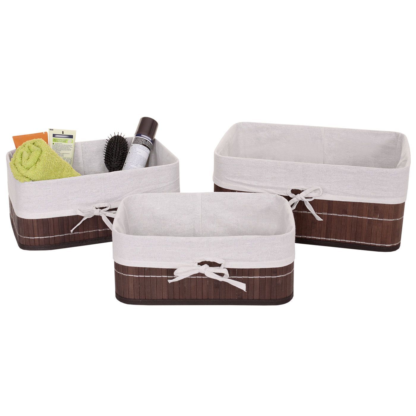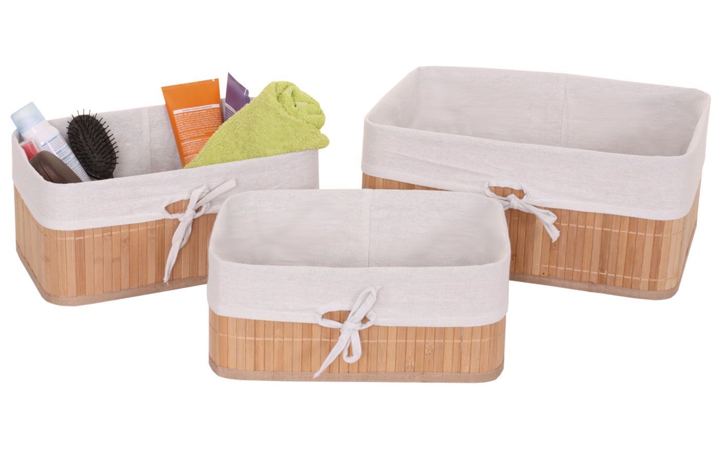 Mendler 3er Set Aufbewahrungskorb HWC-C21, Korb Aufbewahrungsbox Ordnungsbox, Bambus