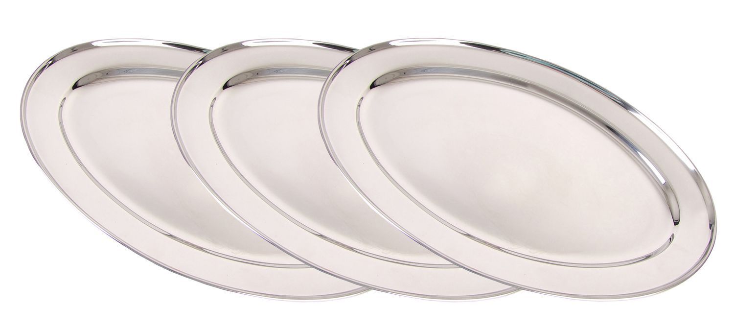 3er-Set Edelstahl Servierplatte 30cm Buffetplatte Serviertablett Partyplatte