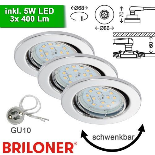 Briloner 3er Set Einbauspots Chrom GU10 inkl. 5W LED