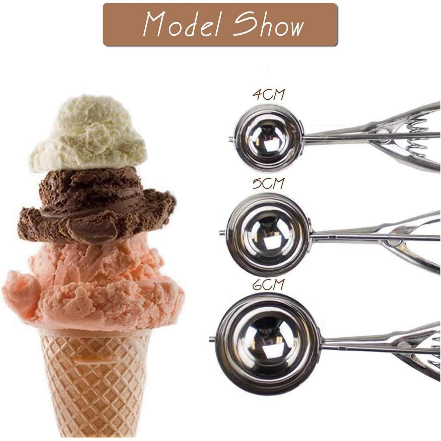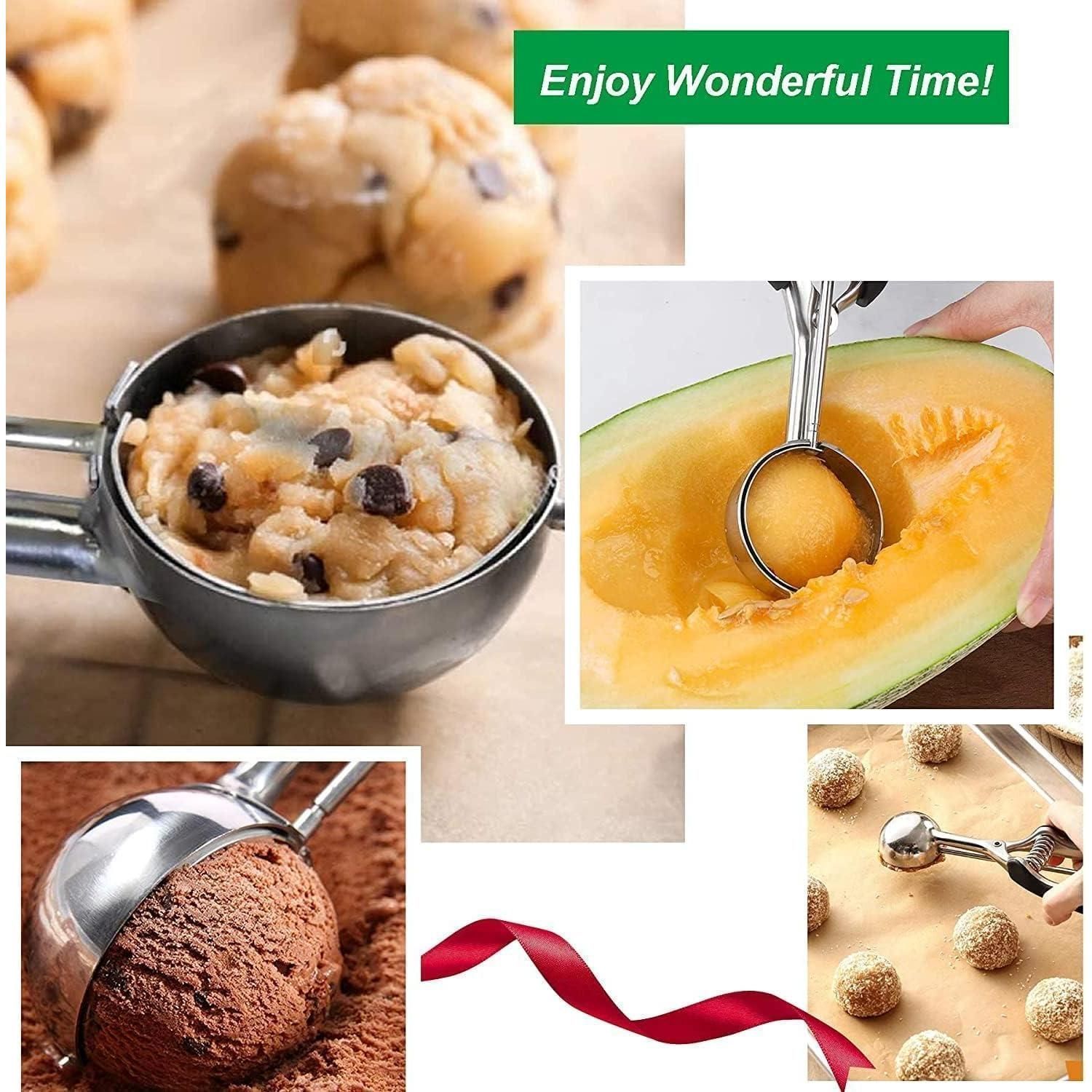 3er Set Eisportionierer Edelstahl mit Auslöser Eis Kekse Melone Küchenhelfer