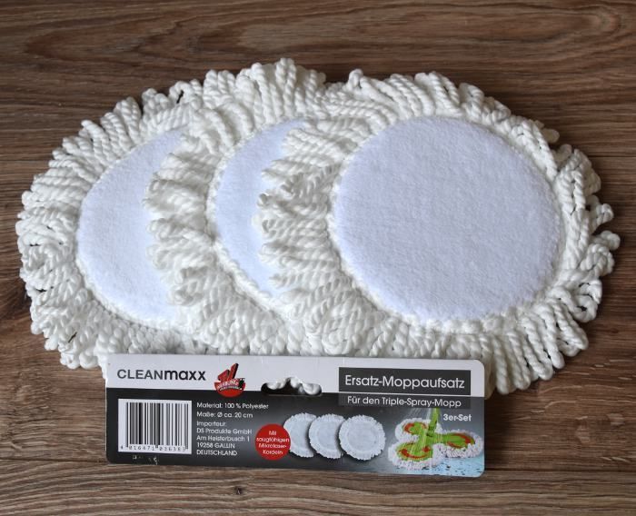 3er-Set Ersatz-Moppaufsatz CLEANmaxx Weiß für Triple Spray-Mopp NEU