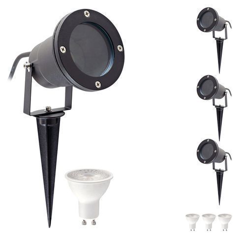3er Set Gartenleuchten PORTO Gartenstrahler Außenlampe 3x GU10 3W Kaltweiß Glühbirne