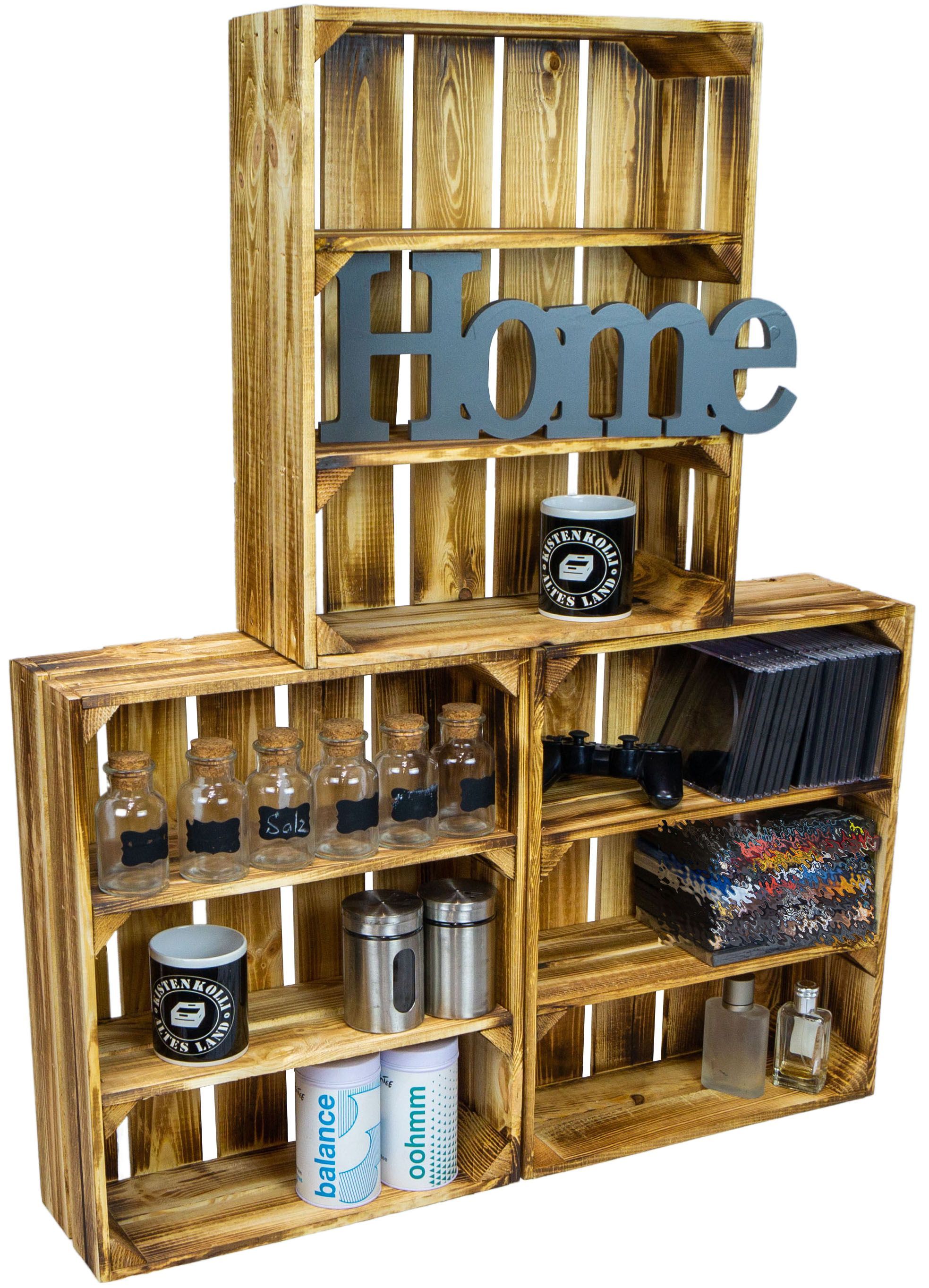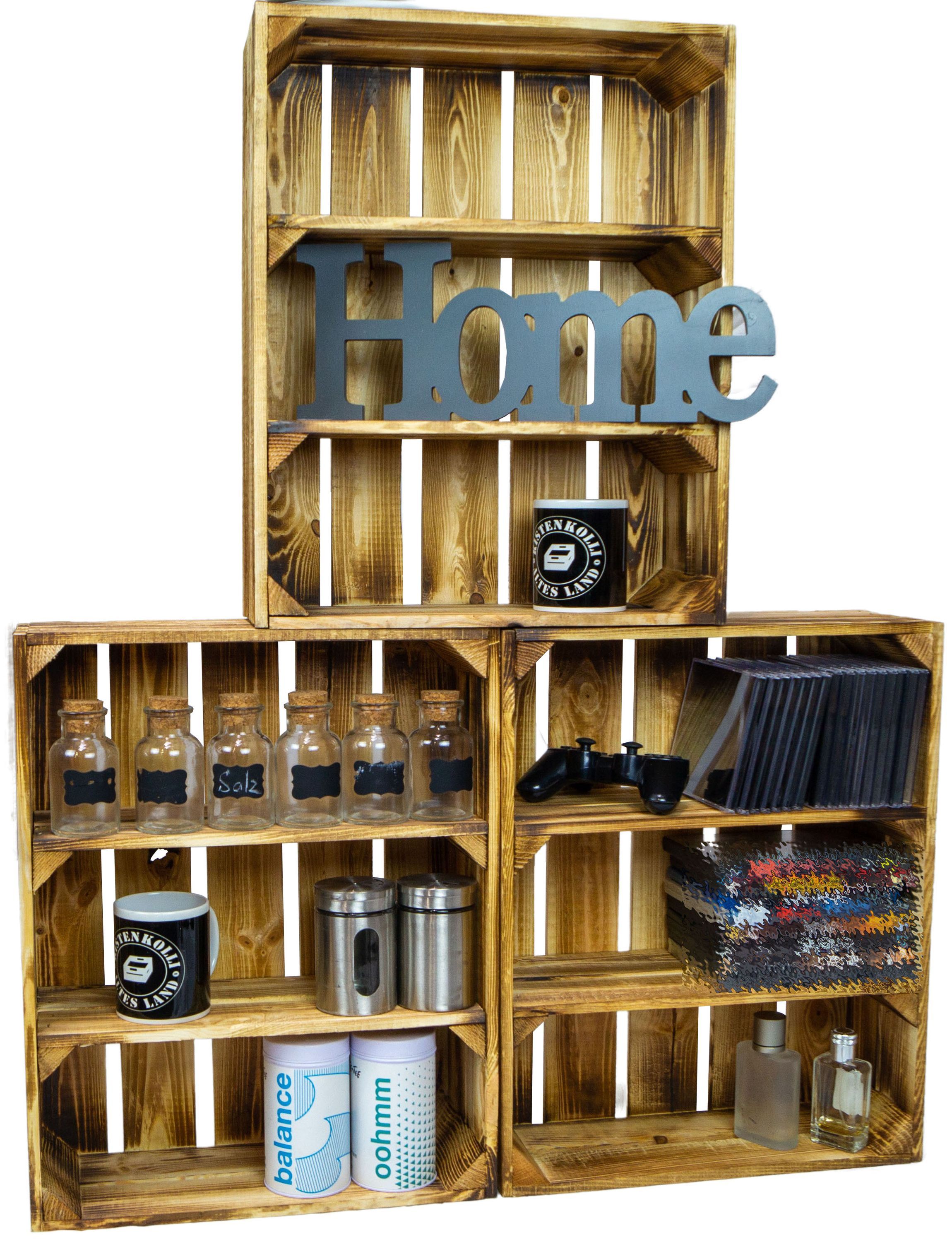3er Set Gewürzregal Wilma geflammt Sideboard Wandregal Weinkiste Ablagekiste Aufbw