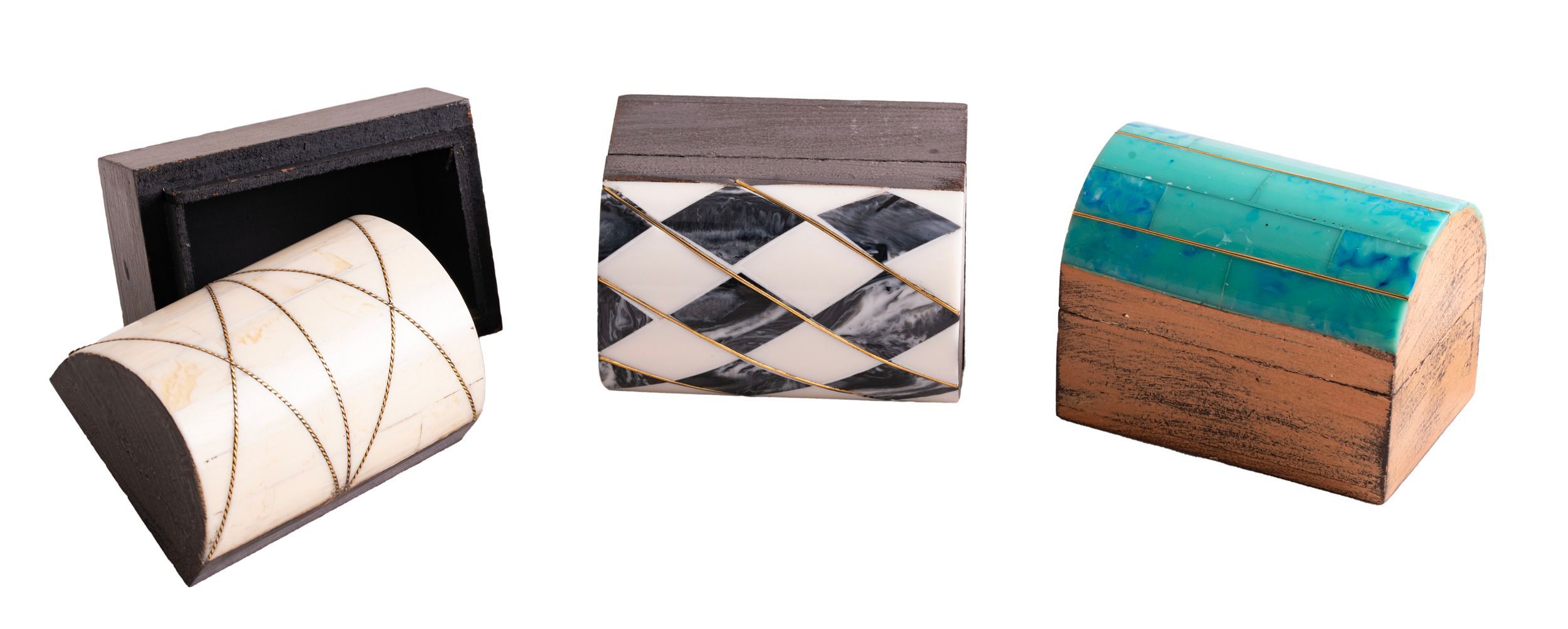 3er Set Holzboxen mit Kunstharzdekor bunt 7,5 x 5,5 x 5 cm Holzkiste Truhe Dose