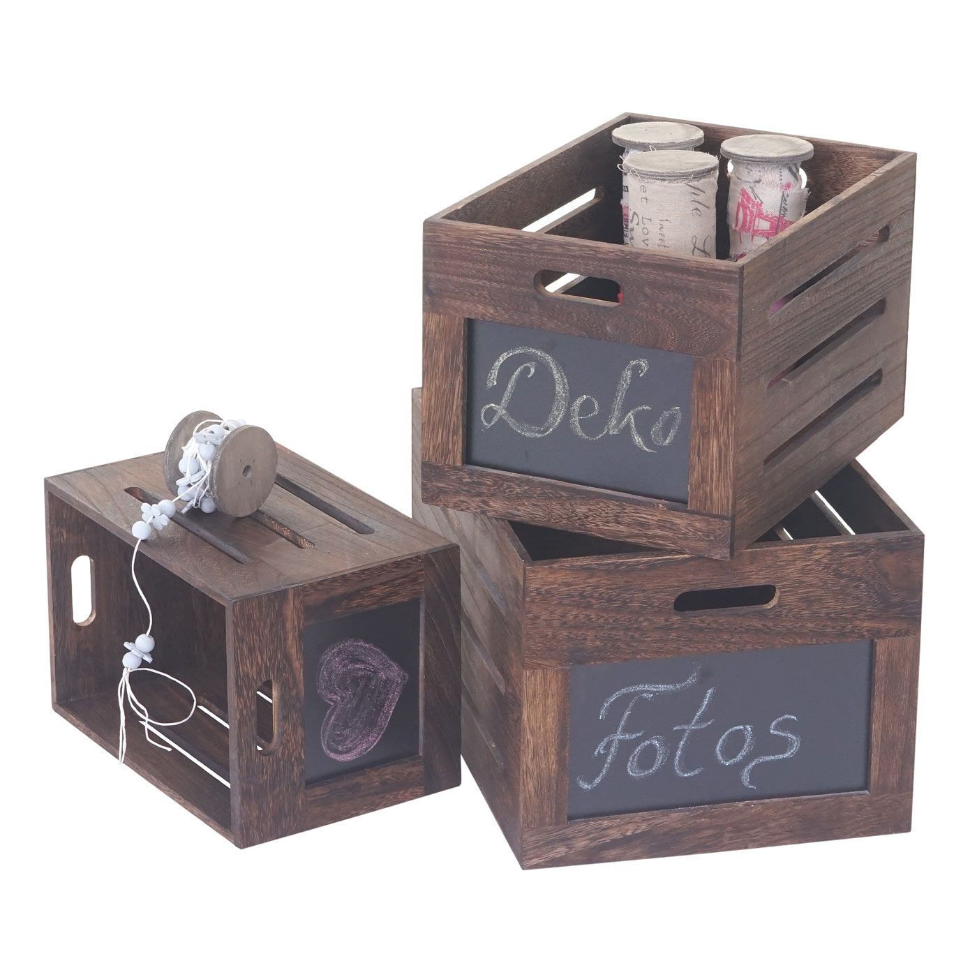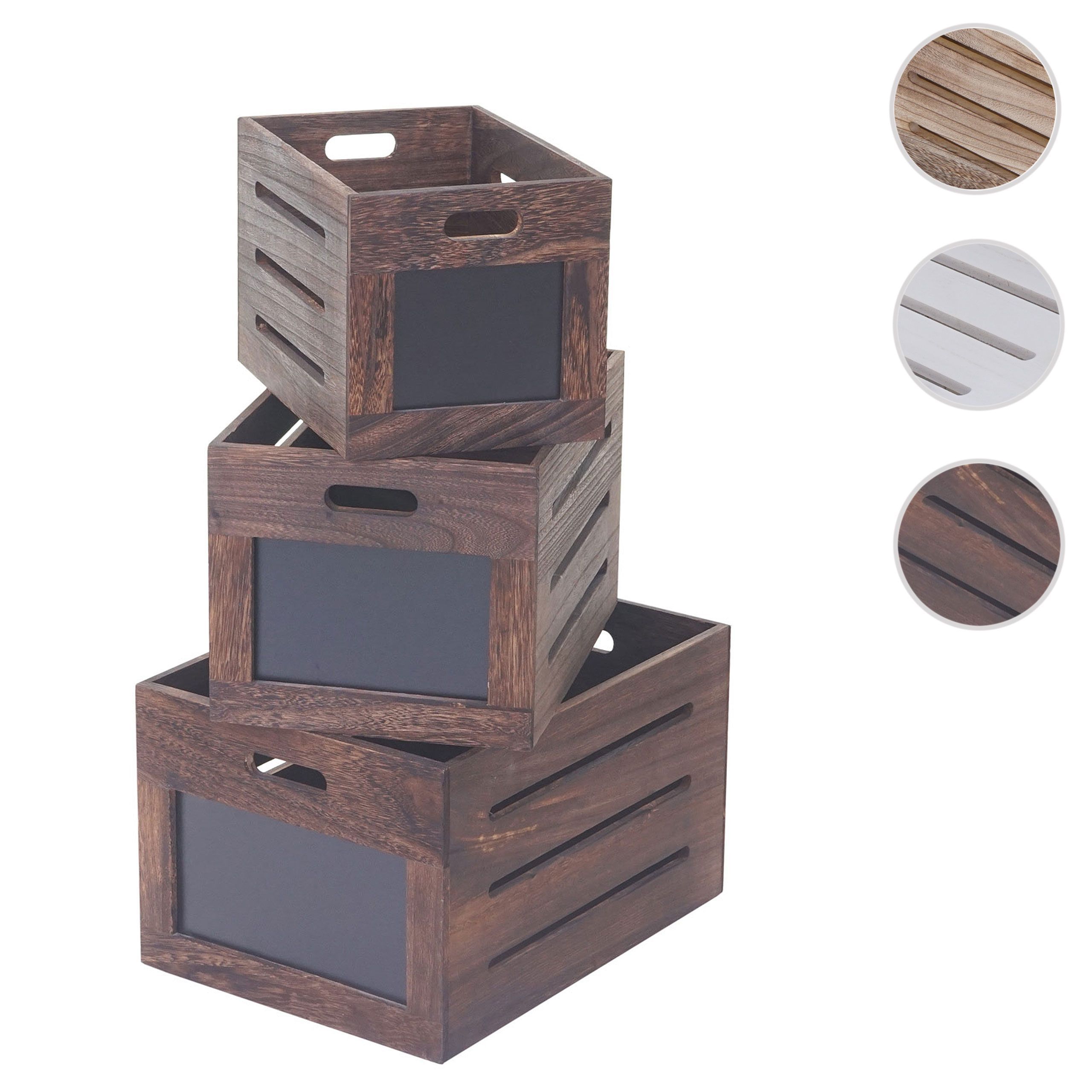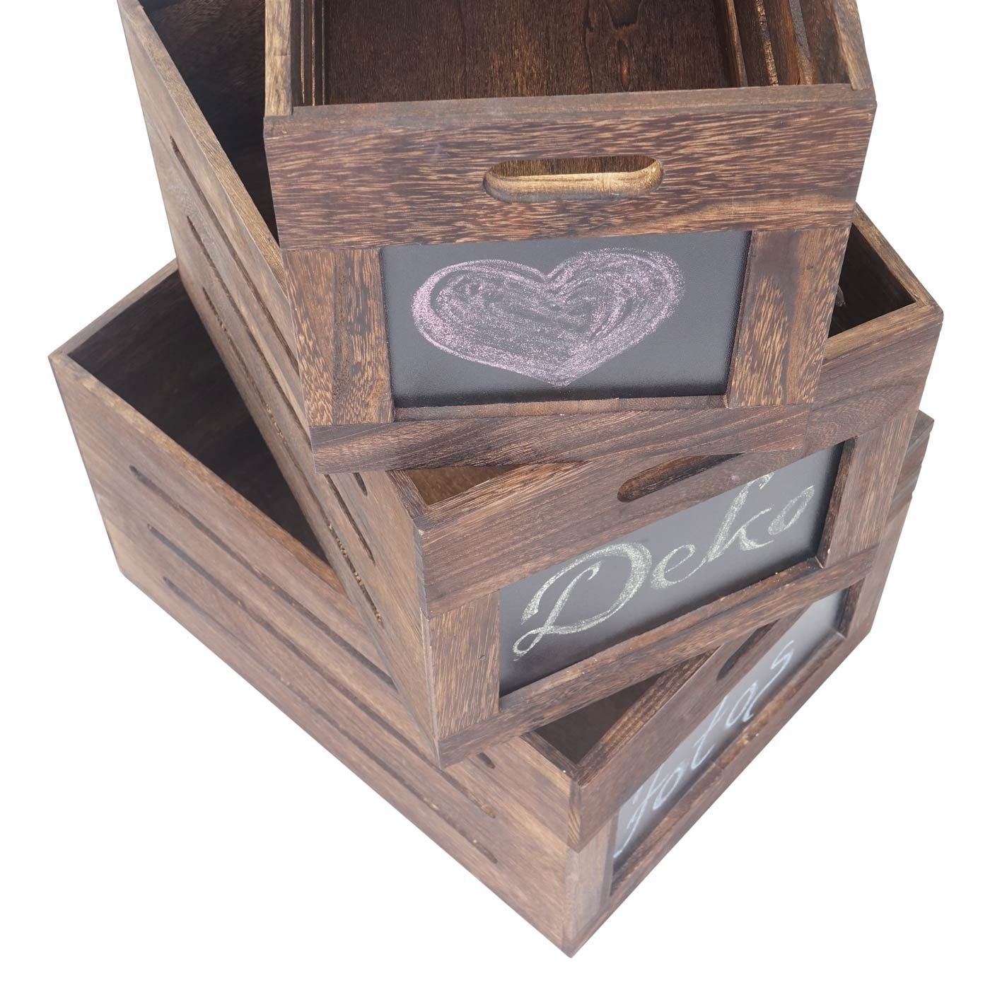 Mendler 3er Set Holzkiste HWC-E11, Aufbewahrungsbox mit Tafel, Shabby-Look