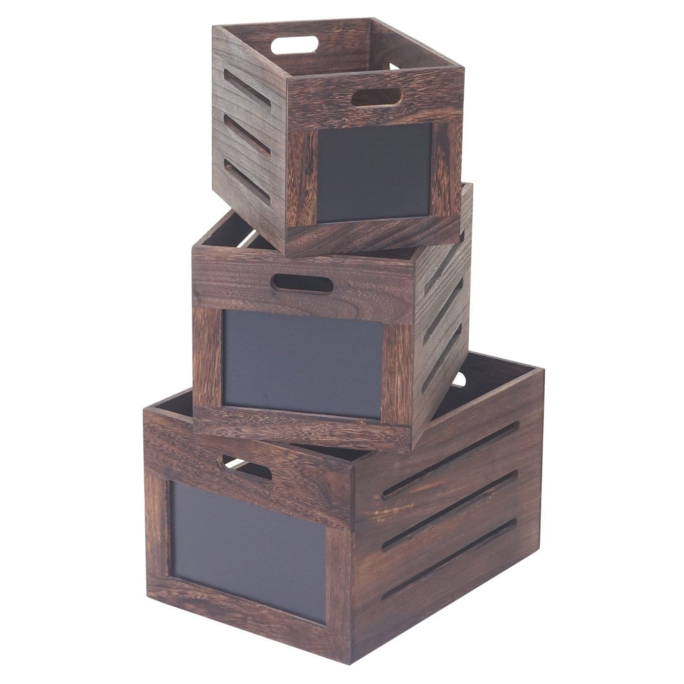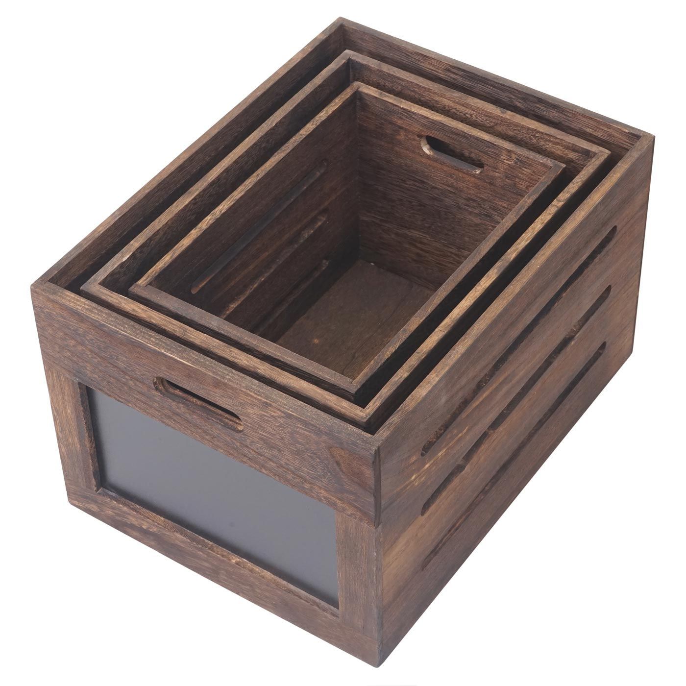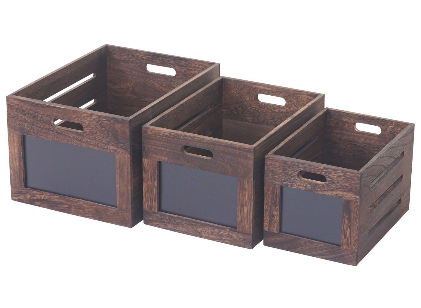 Mendler 3er Set Holzkiste HWC-E11, Aufbewahrungsbox mit Tafel, Shabby-Look