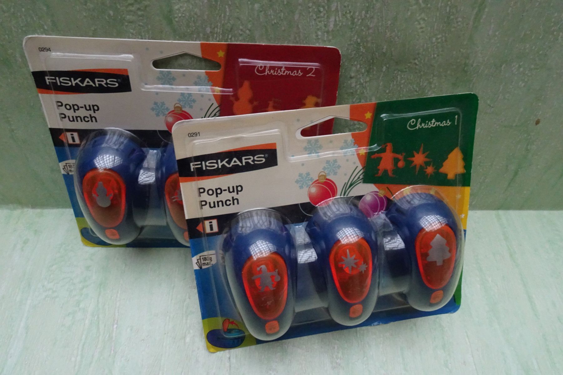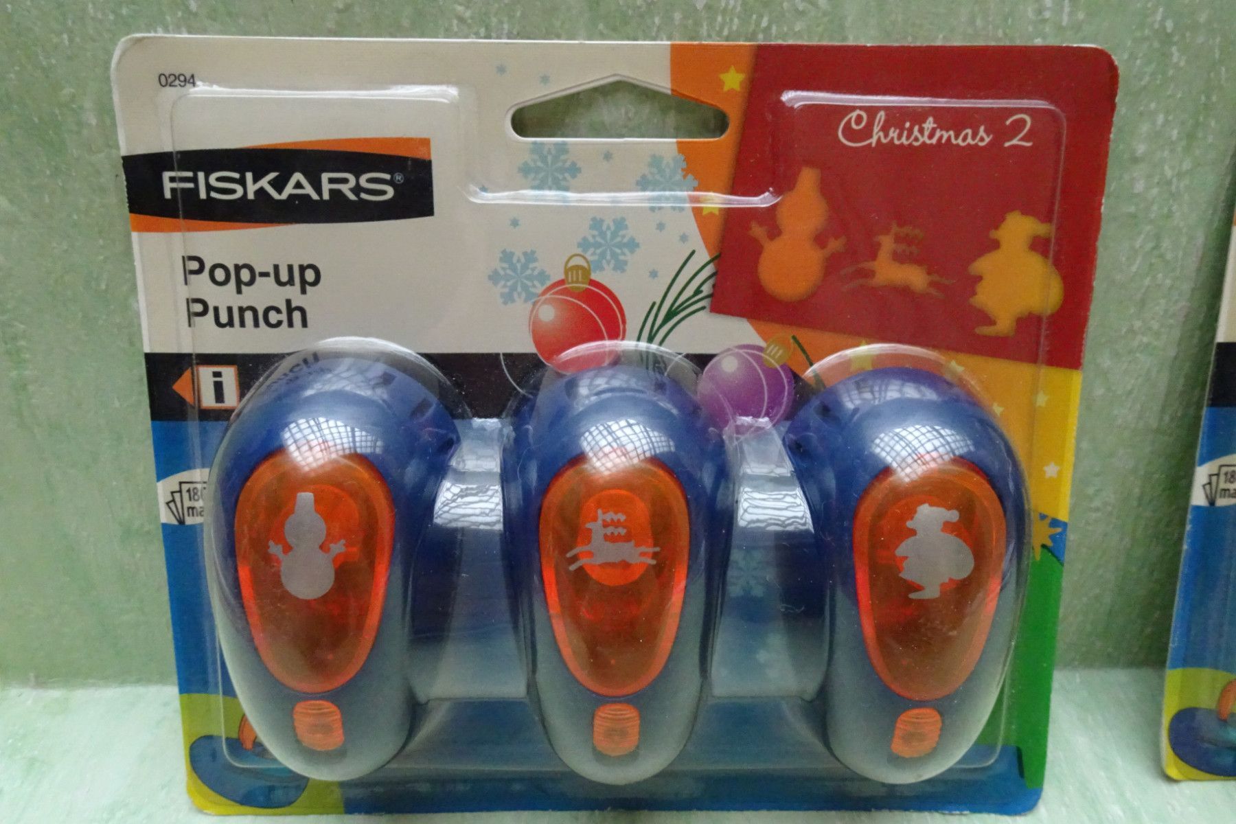 3er Set Pop-UP-Punch Stanzer Fiskars Weihnachten mit Riegel & Auffangbehälter