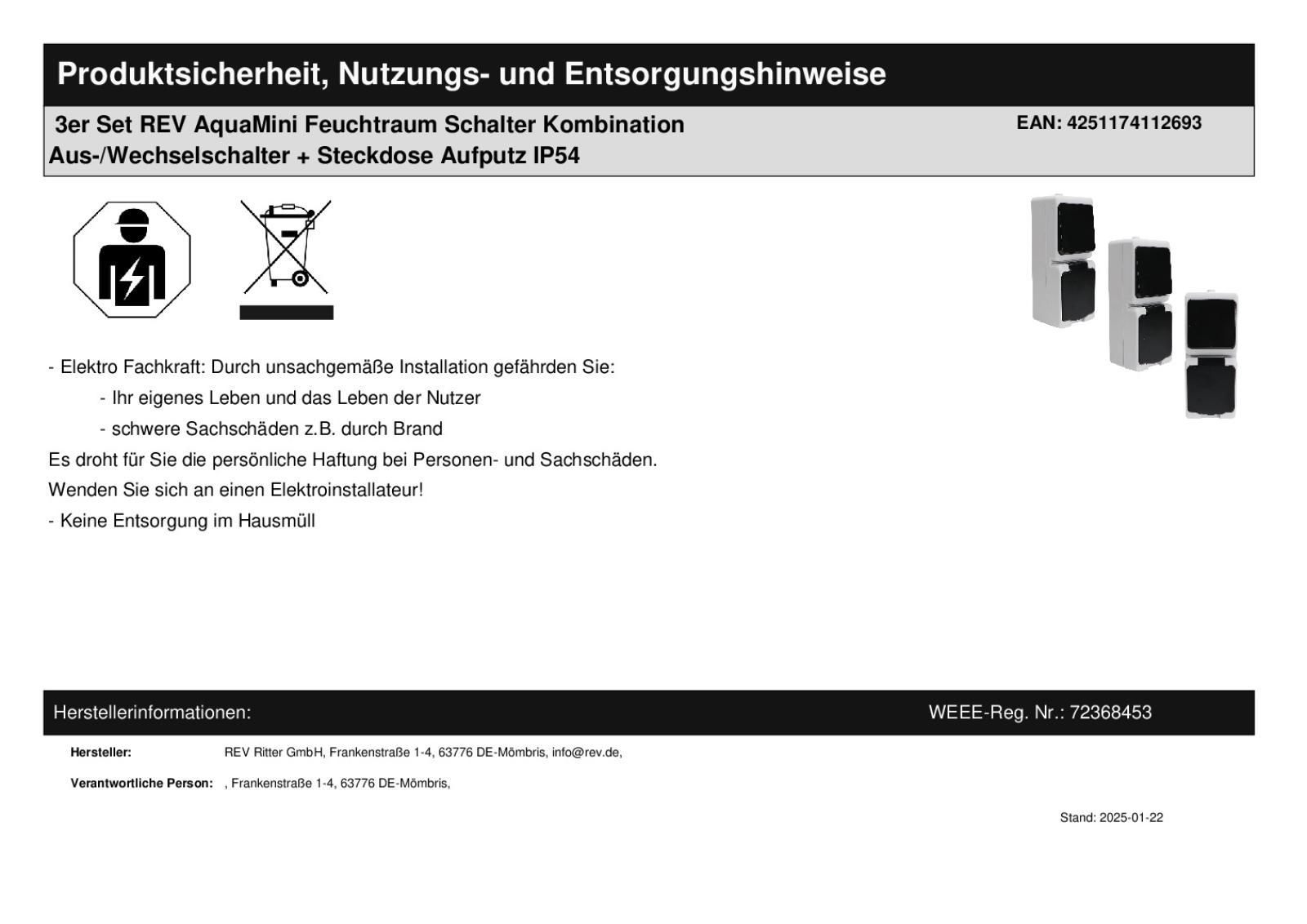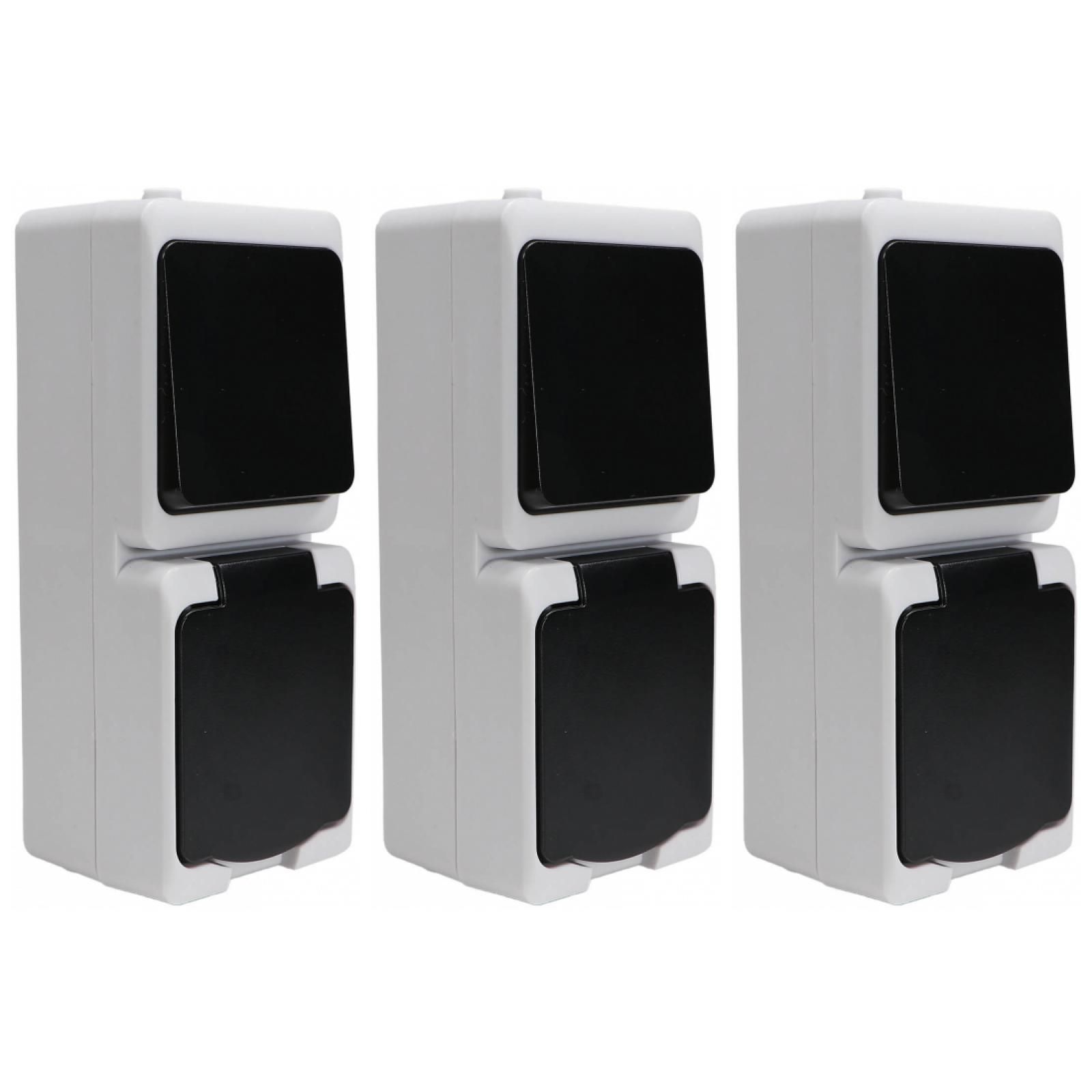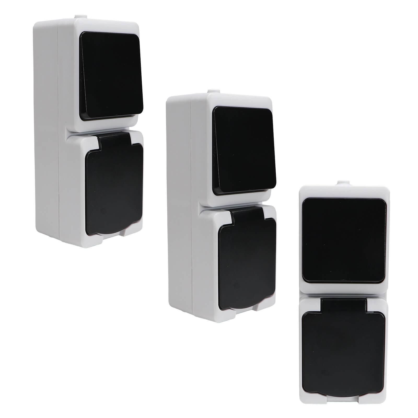 3er Set REV AquaMini Feuchtraum Kombination Schalter Steckdose IP54 mini Aufputz