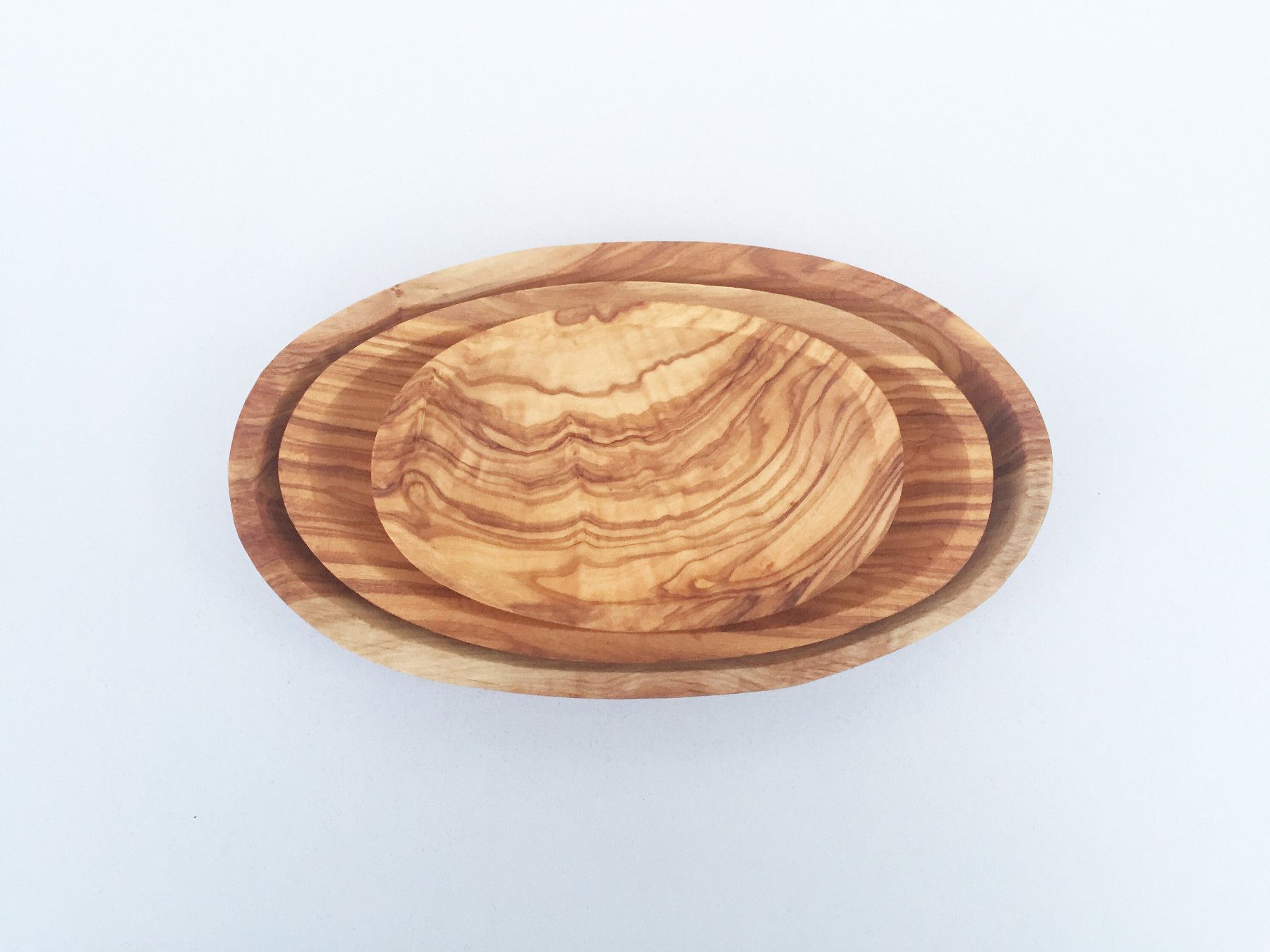 Schale Oval 3er Set Das Schalen 3er Set in Ovalform ist aus Olivenholz und in Handarbeit angefertigt. Der künstlerisch begabte Handwerker hat jedes Stück einzeln per Hand hergestellt, was jedes Stück zu einem Unikat macht. Die einzigartige rötlich-braune Maserung mit einem unregelmäßigen Faserverlau