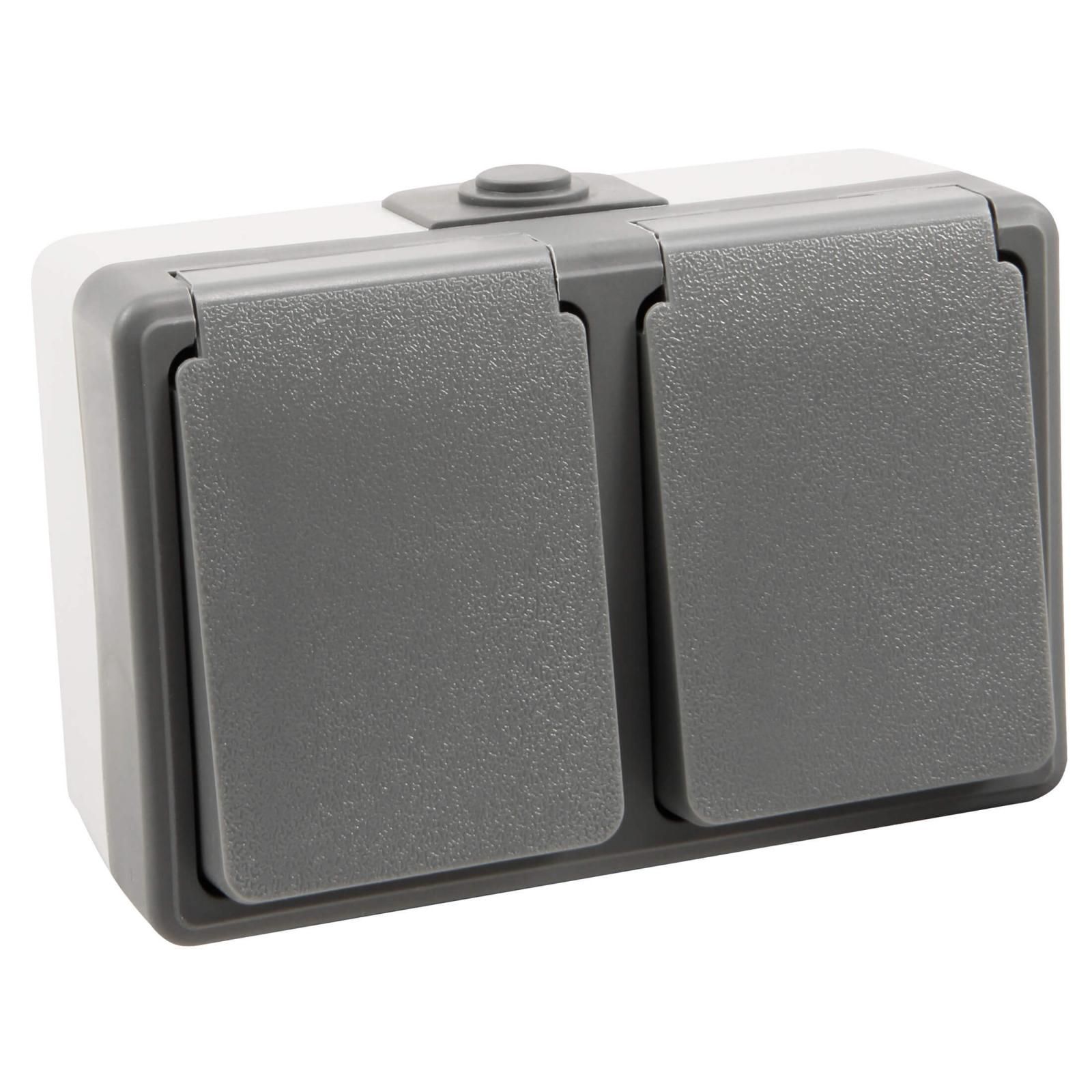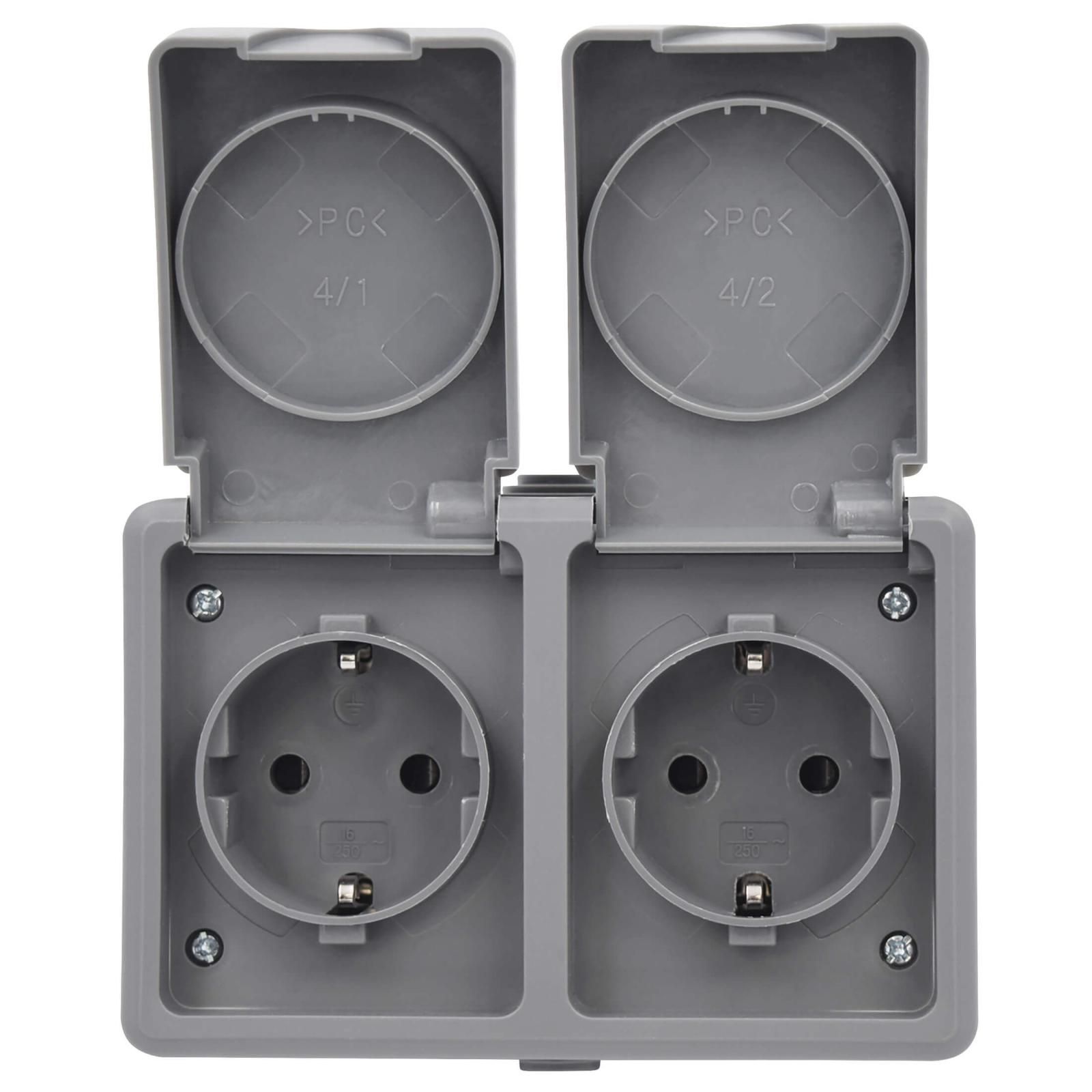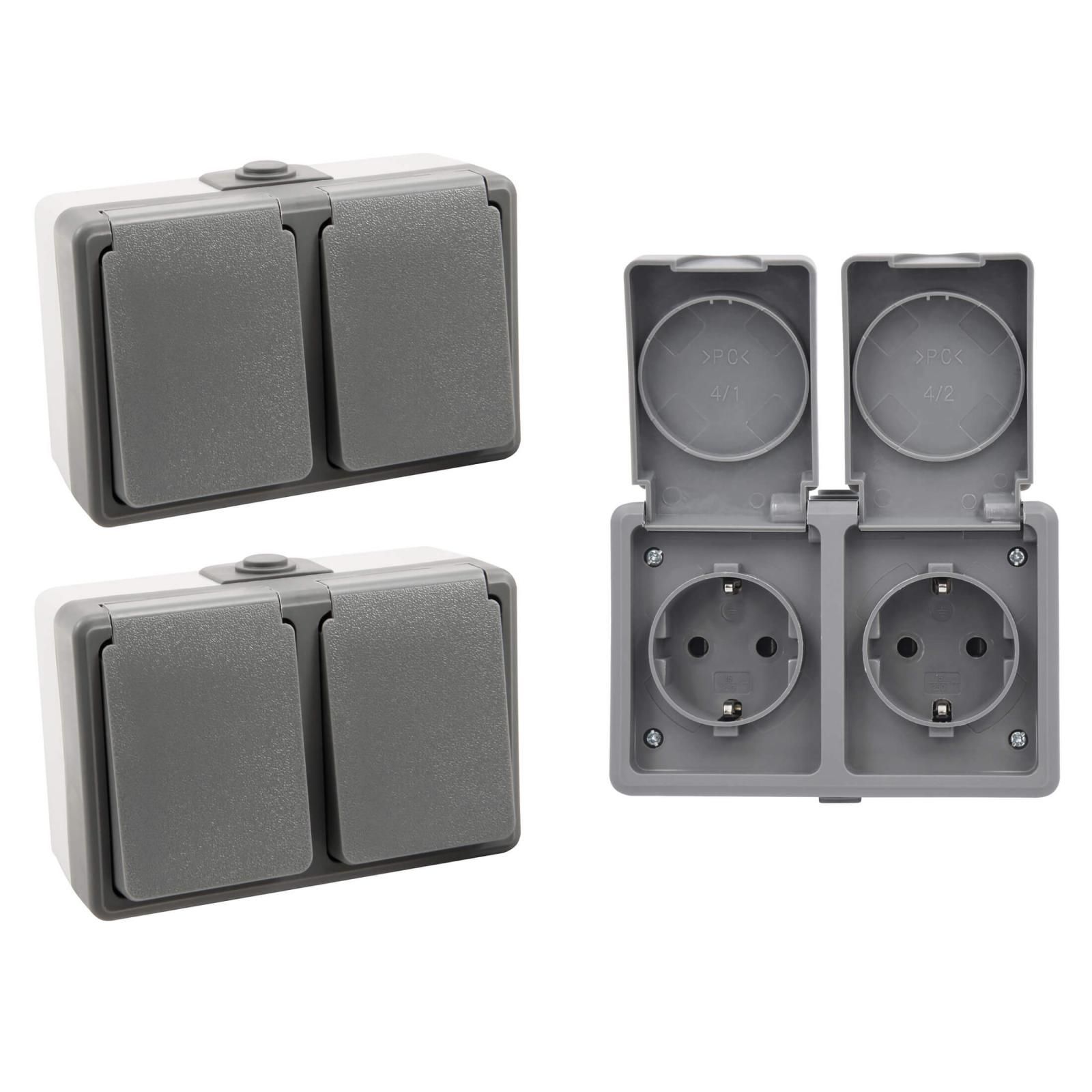 ETT 3er Set SECURE Feuchtraum Doppelsteckdose IP44 Aufputz 2-fach Steckdose grau