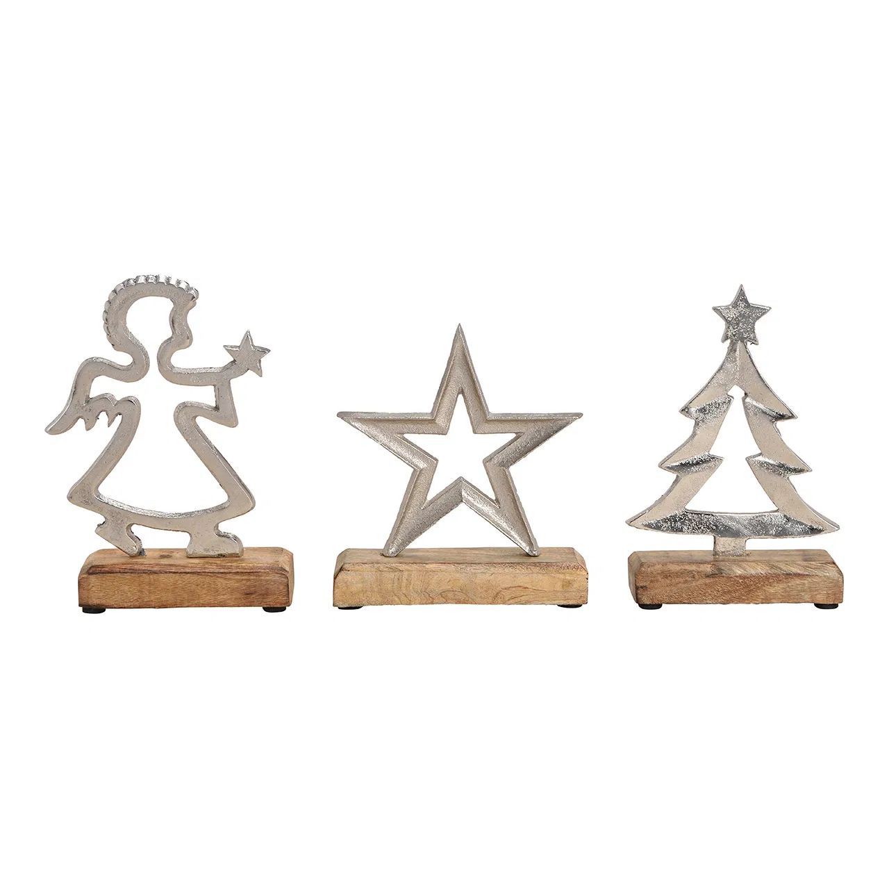 Wurm 3er Set Stern, Baum und Engel aus Metall Mangoholz 20 cm