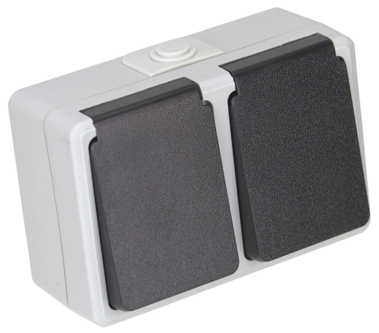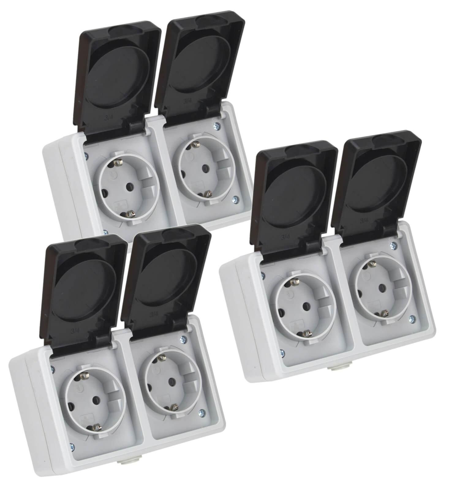 ETT 3er Set TAFF Feuchtraum Doppel Steckdose horizontal 2-fach Steckdose grau IP44