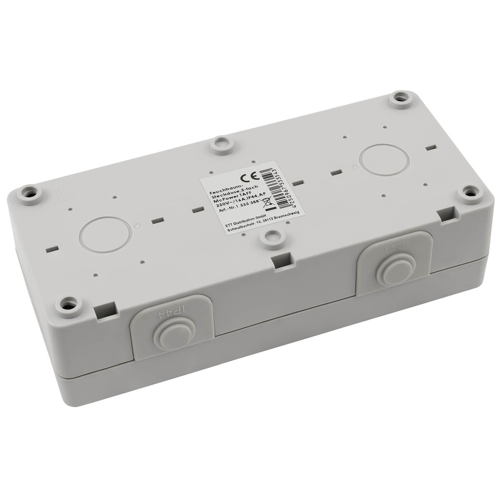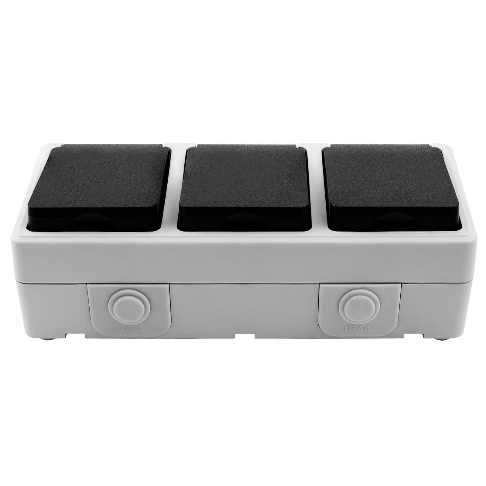 ETT 3er Set TAFF Feuchtraum Dreifach Steckdose 3-fach horizontal IP44 Aufputz grau