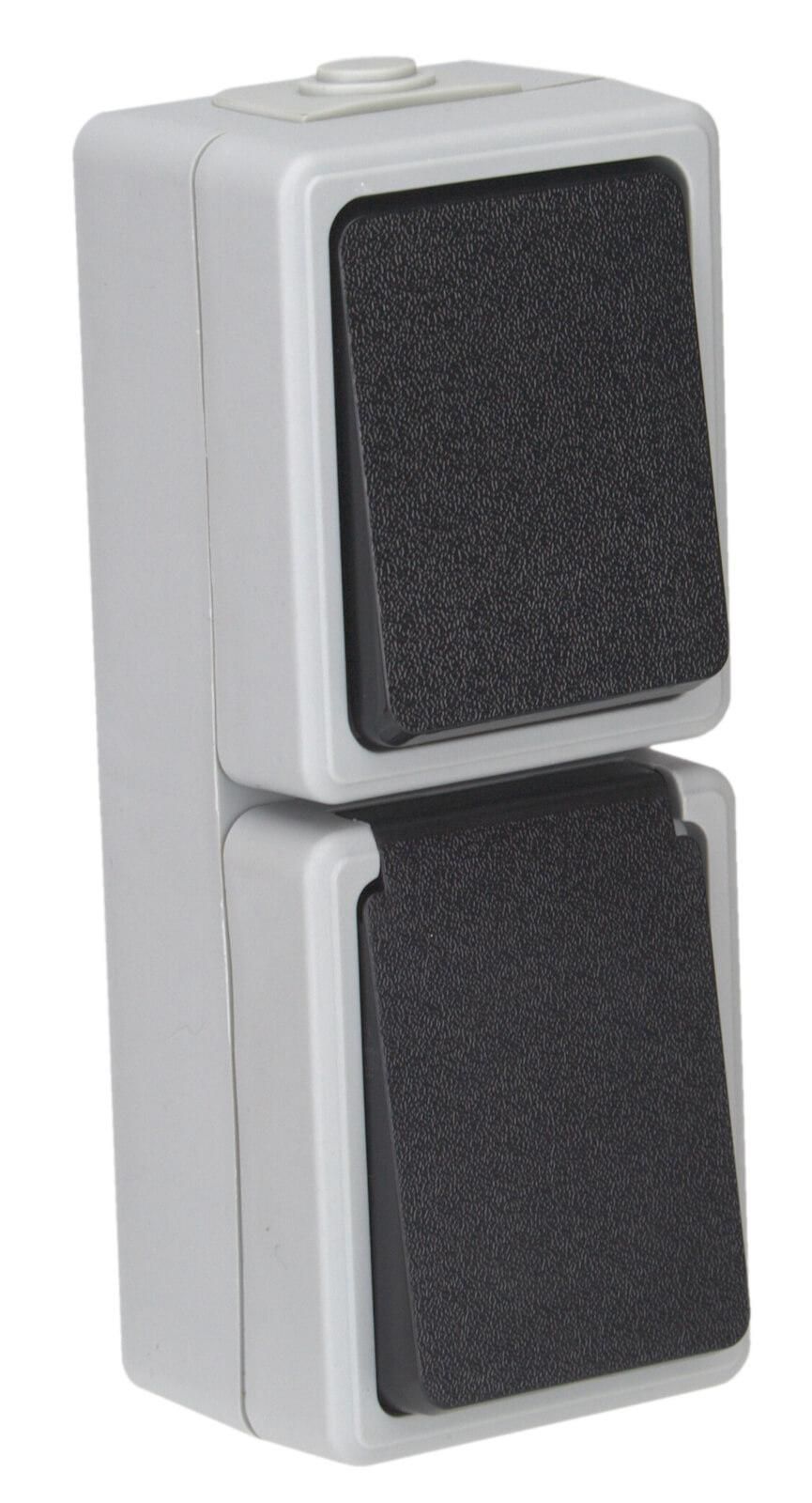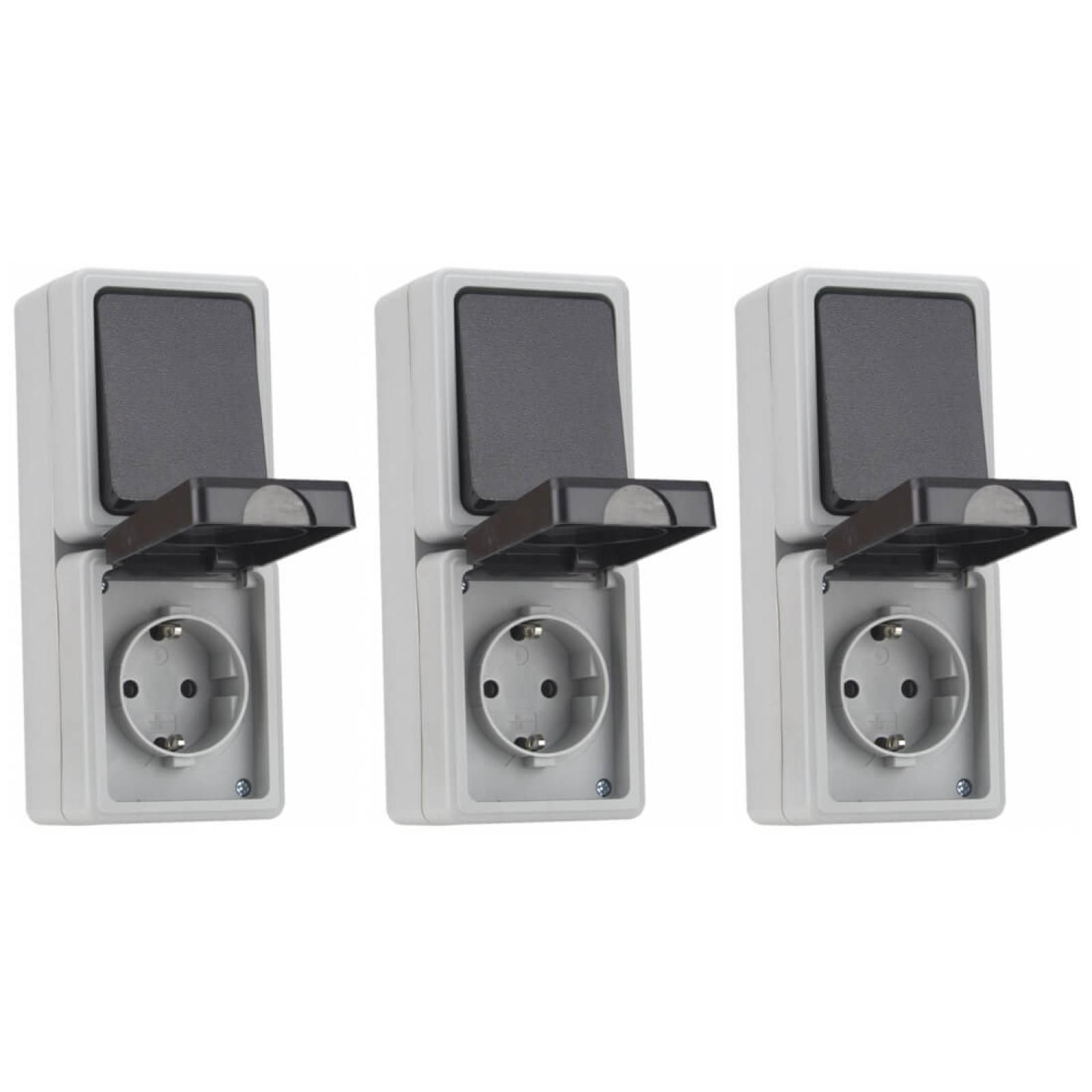 ETT 3er Set TAFF Feuchtraum Kombination Steckdose Schalter vertikal grau IP44
