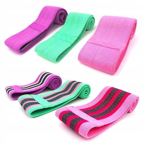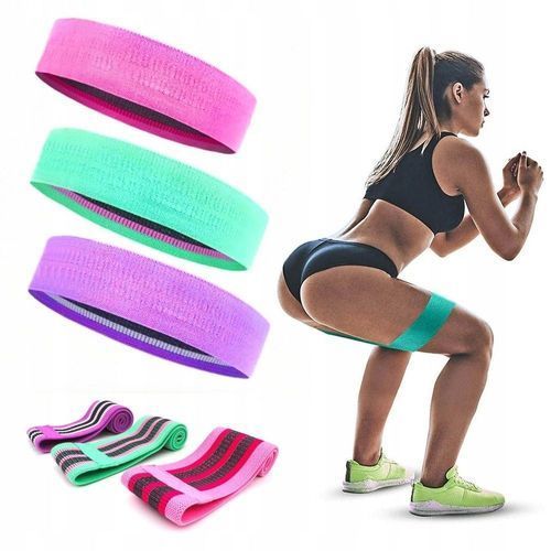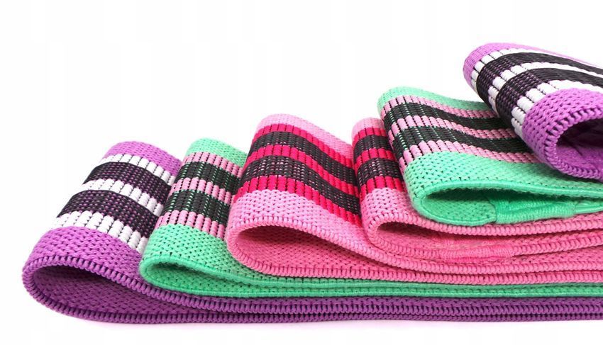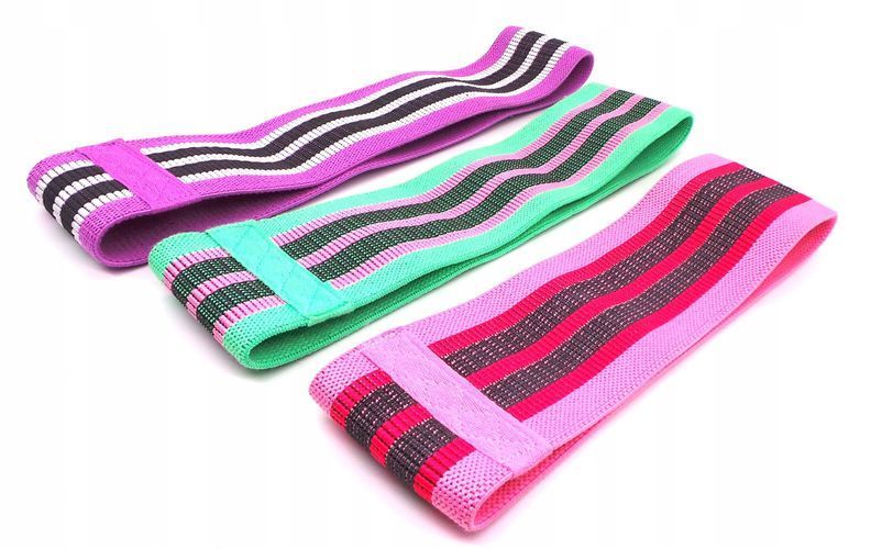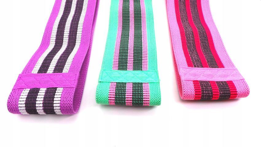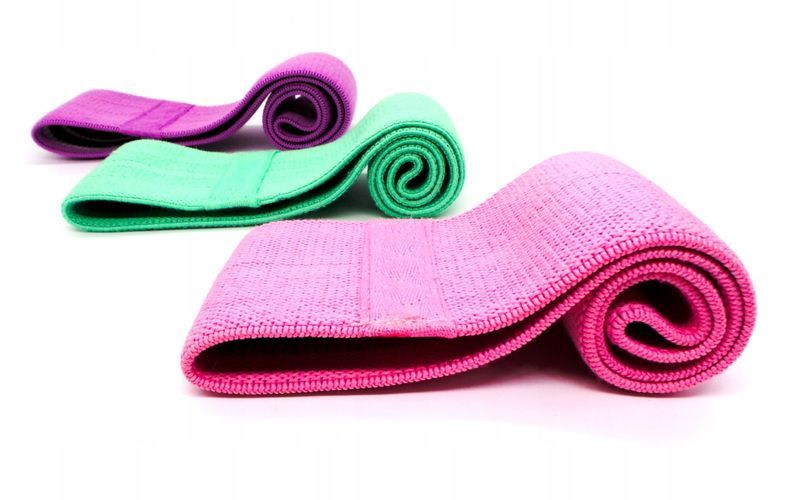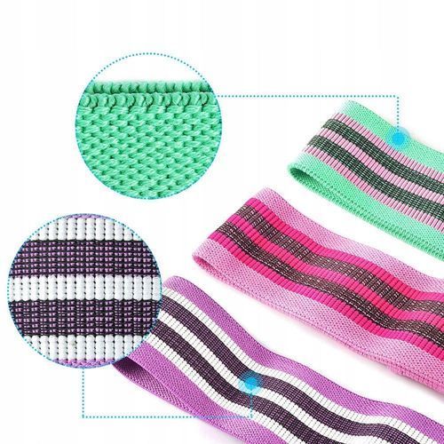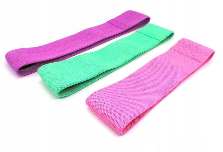 3er-Set Übungsbänder aus Gummi-Widerstandsmaterial, lila, rosa, grün