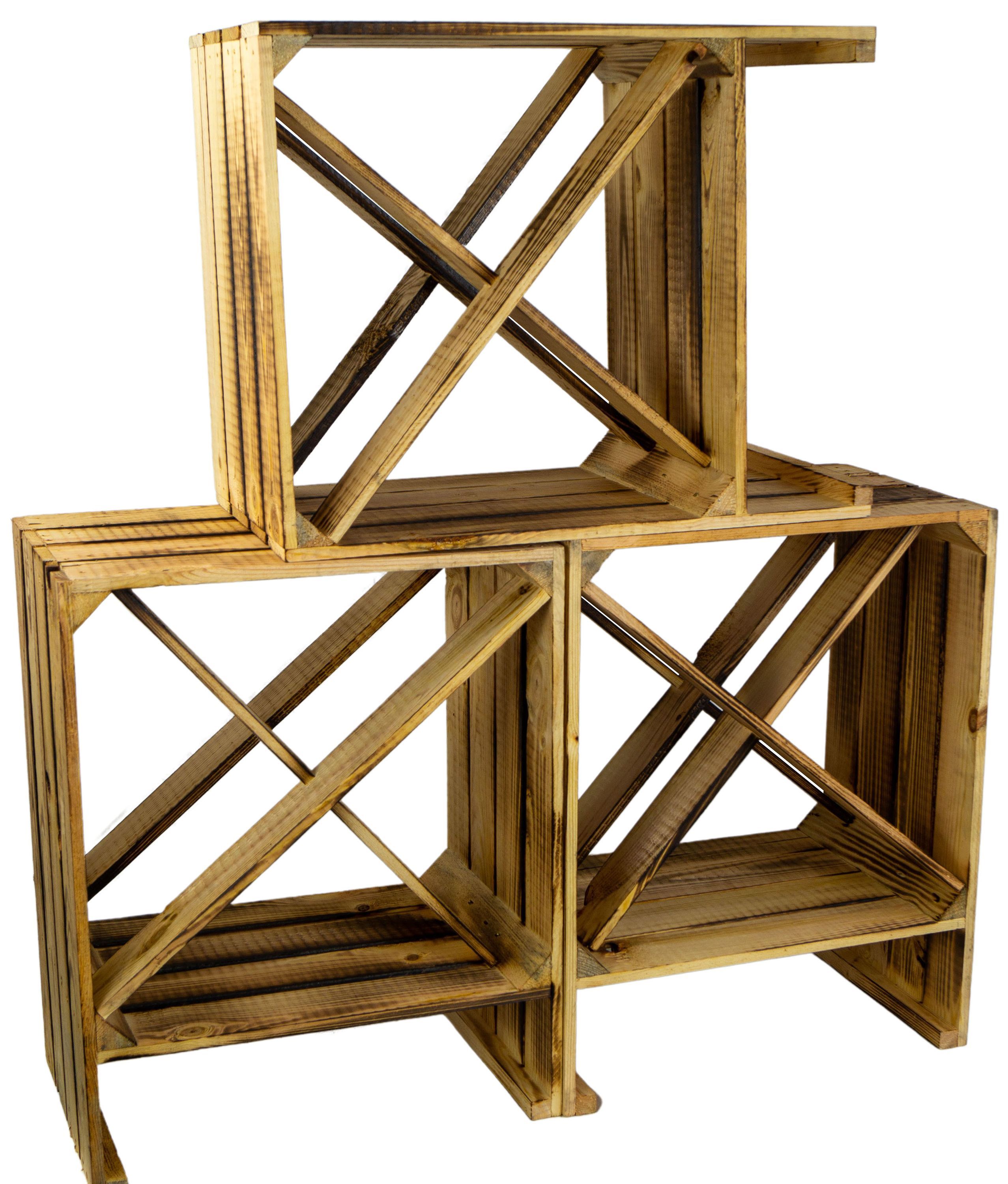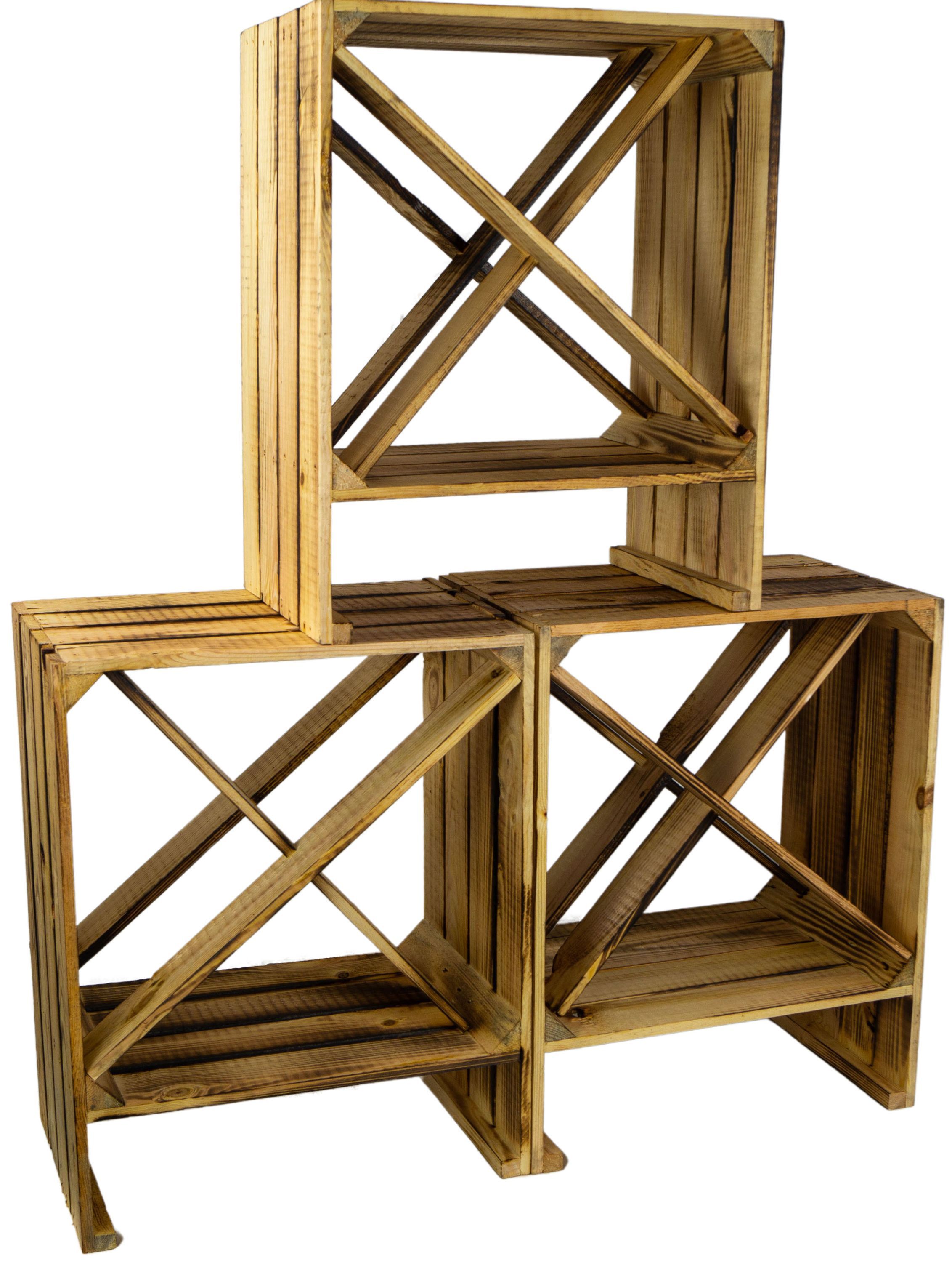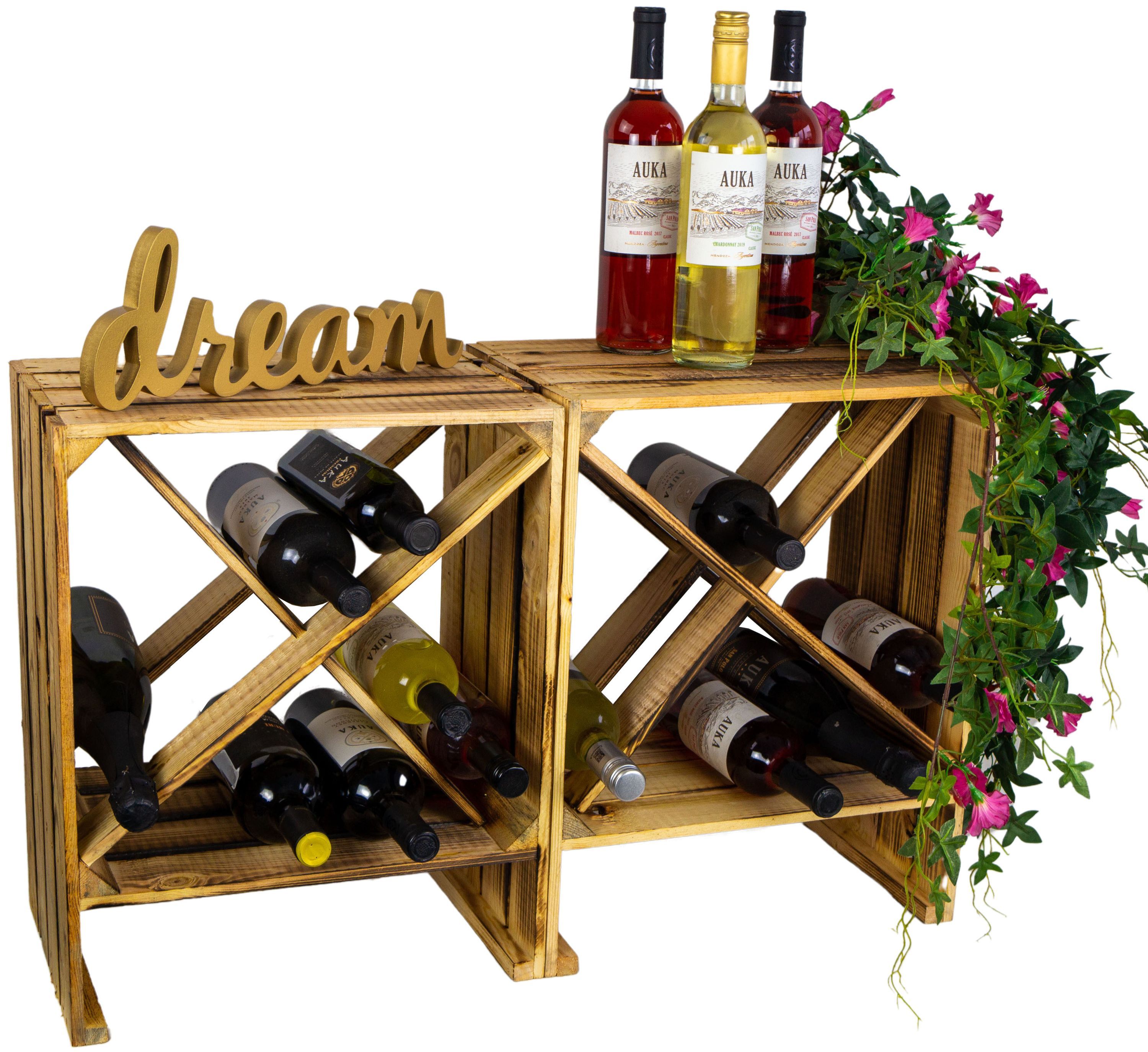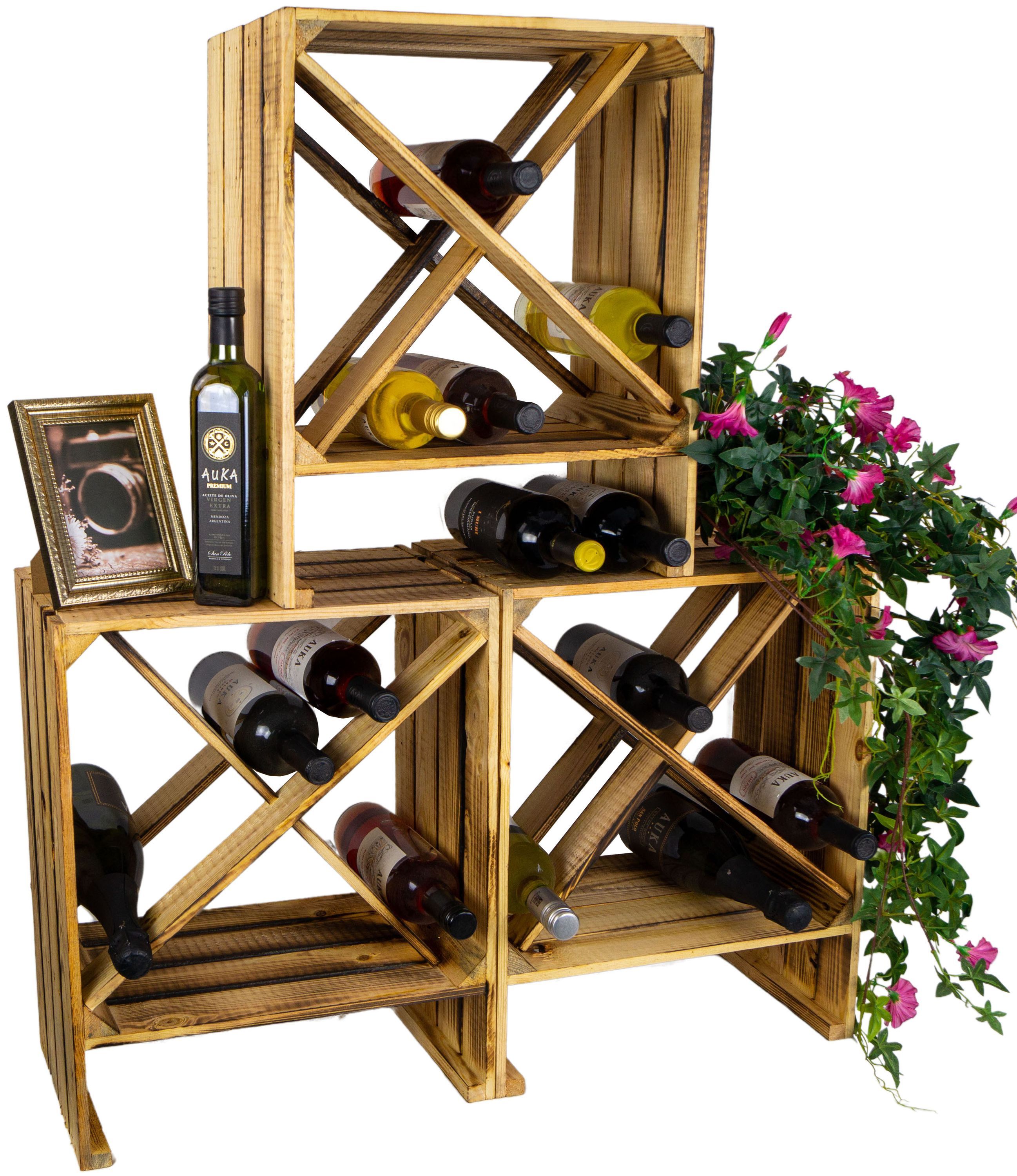 3er Set Weinregal "X" geflammt Weinschrank Flaschenregal Weinablage Holzkiste