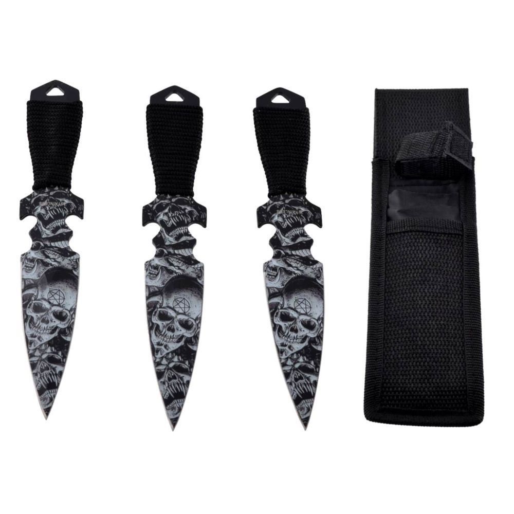 3er Set Wurfmesser Totenköpfe Metallgriff Stahlklinge Nylontasche