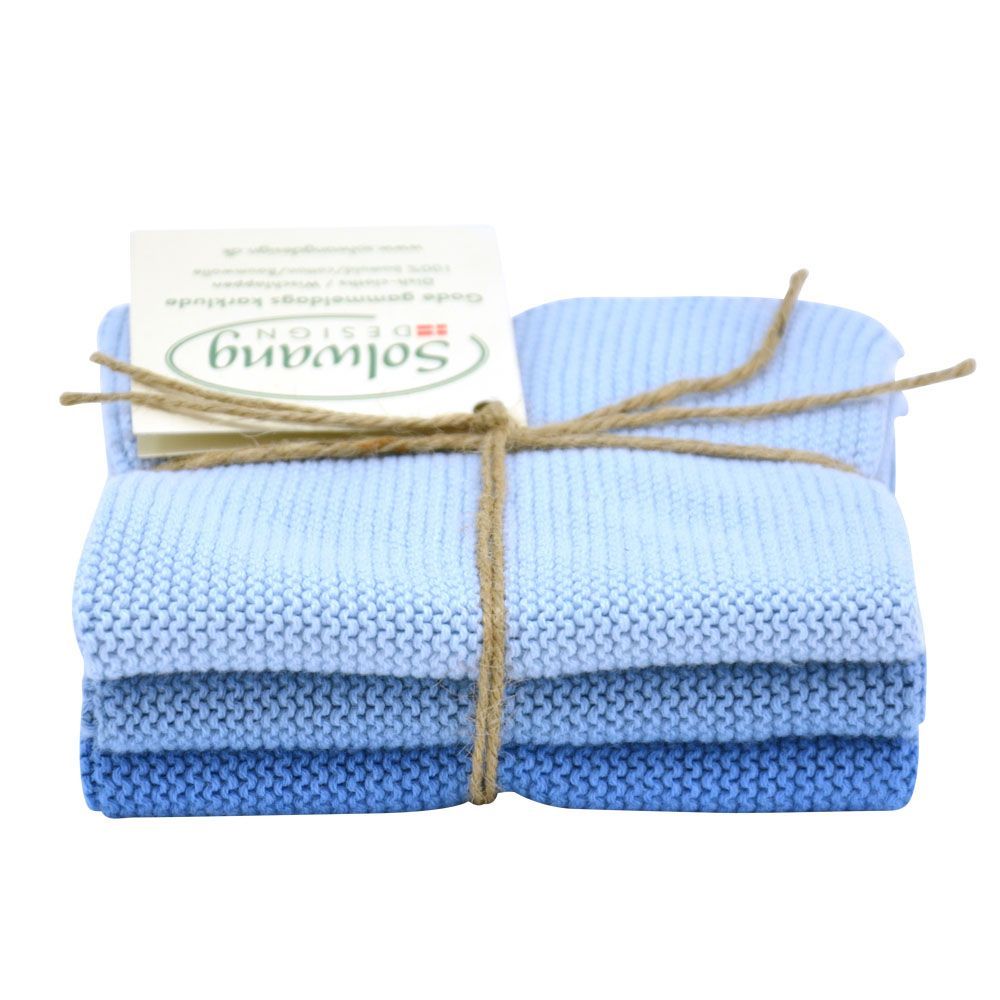 3er Solwang Wischtuch Küchentuch Waschlappen aus Baumwolle blau - Eisblau Kombi
