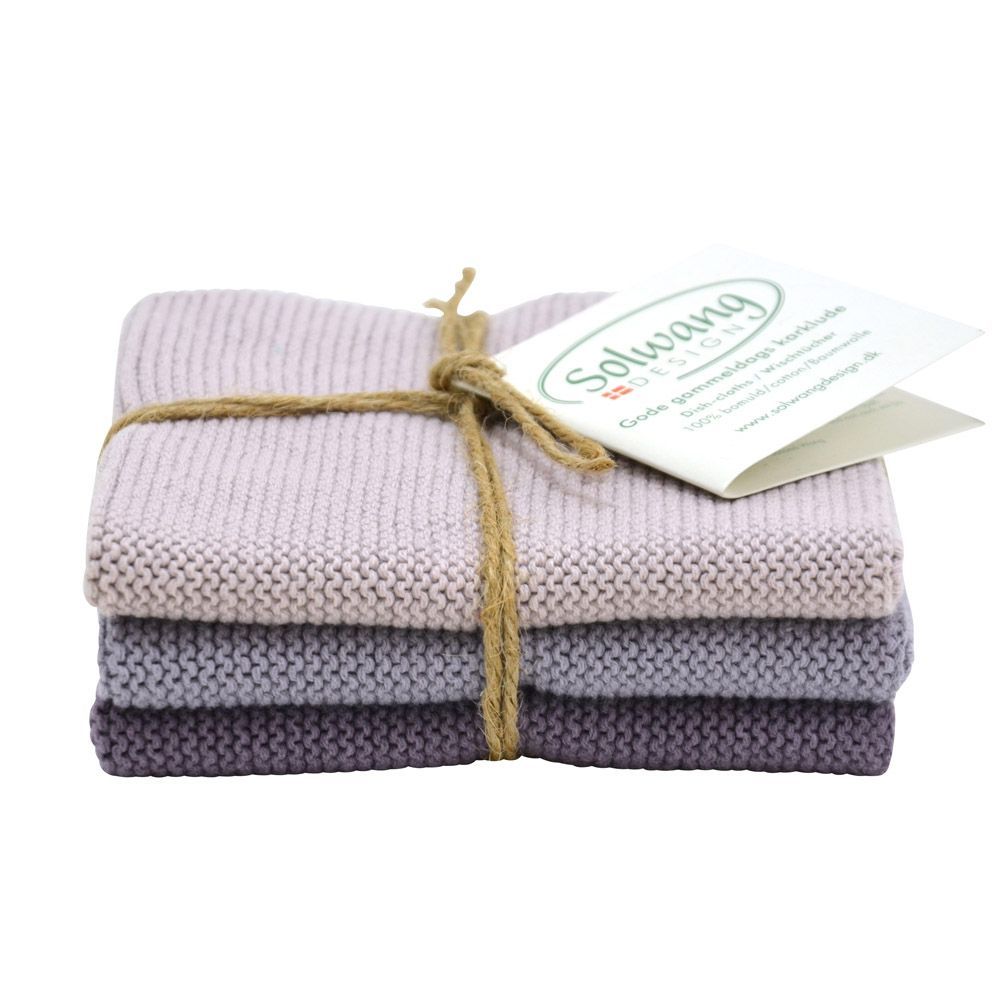 3er Solwang Wischtuch Küchentuch Waschlappen aus Baumwolle - Staubig LILA Kombi