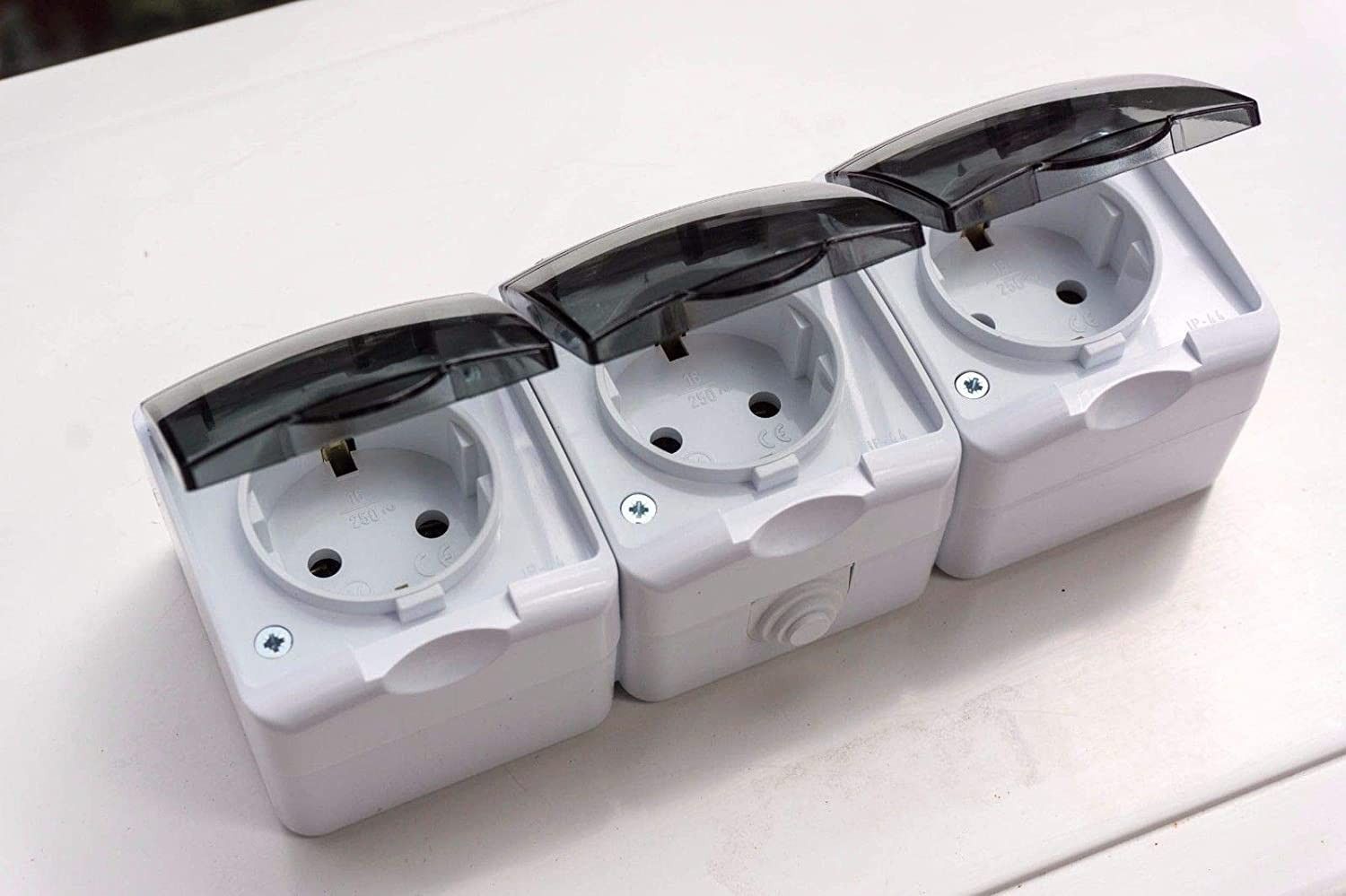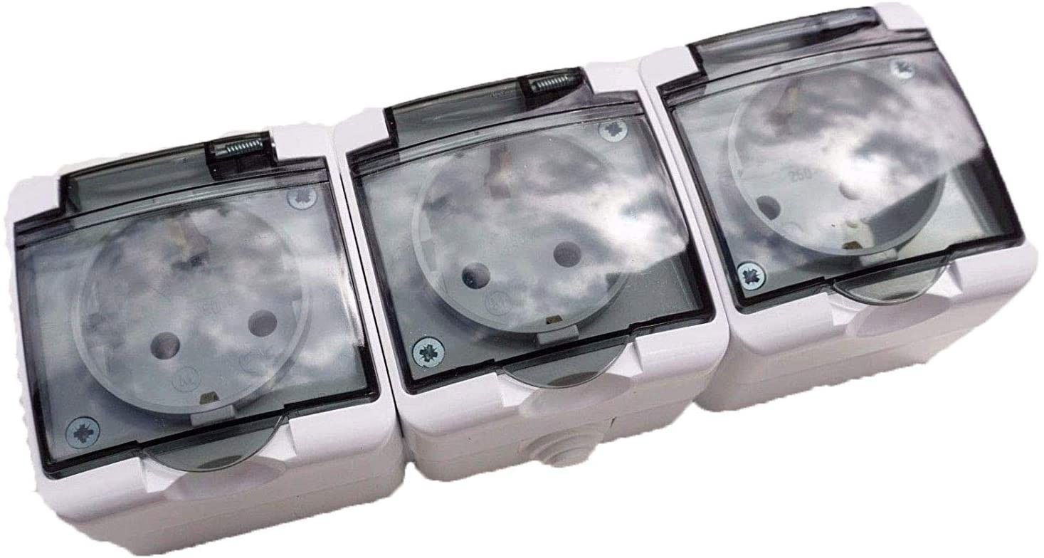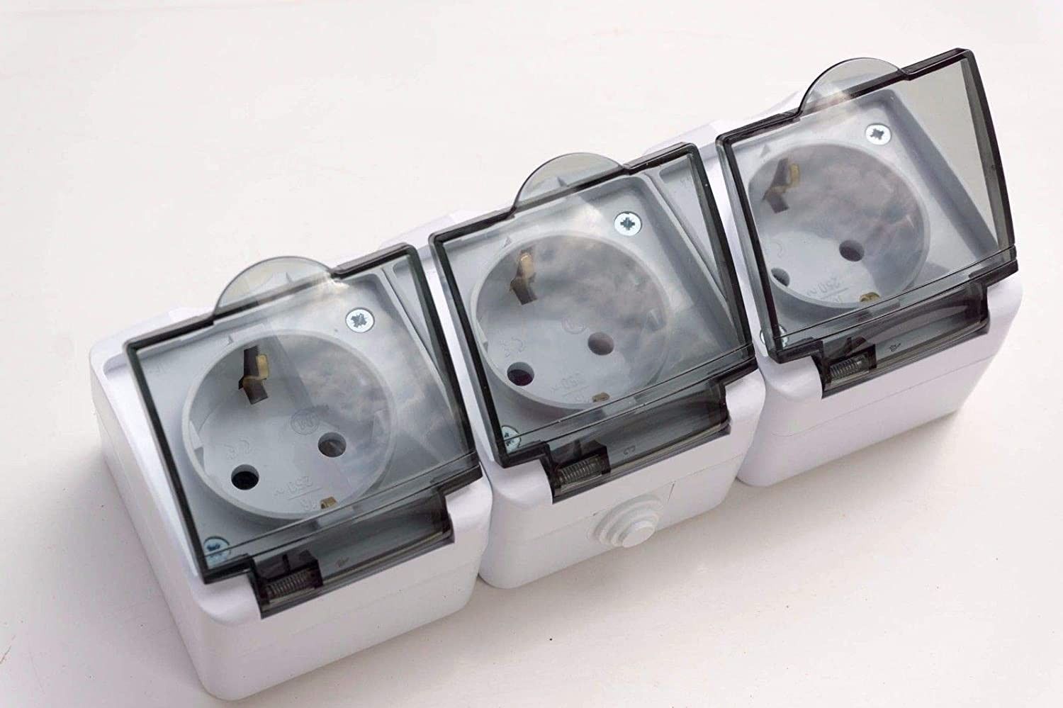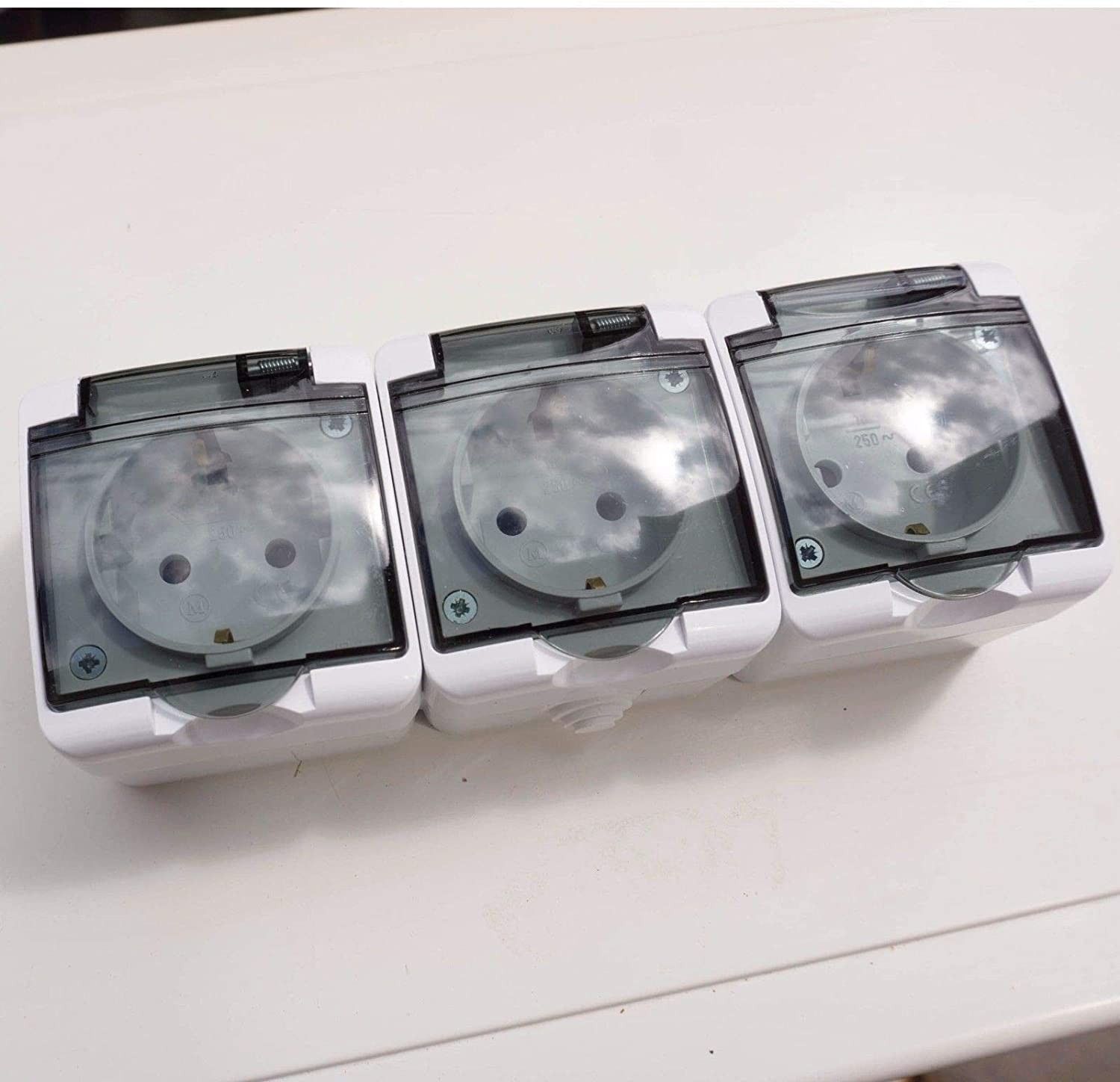 3er Steckdose weiss 3-fach Feuchtraum IP44 16A 250V Aufputz-Montage Feuchtraum