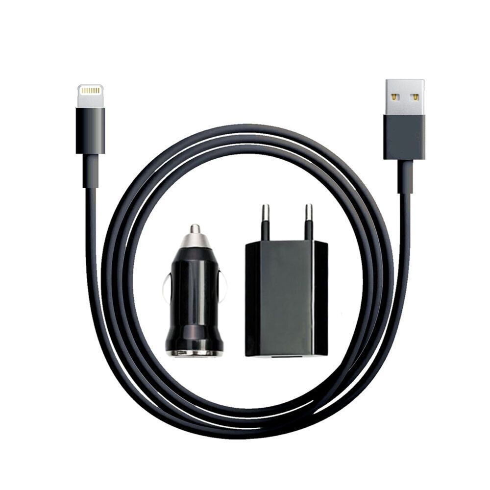 3in1 Auto Adpater USB Micro Daten Lade Kabel 1m Netzteil Smartphone Navi Schwarz
