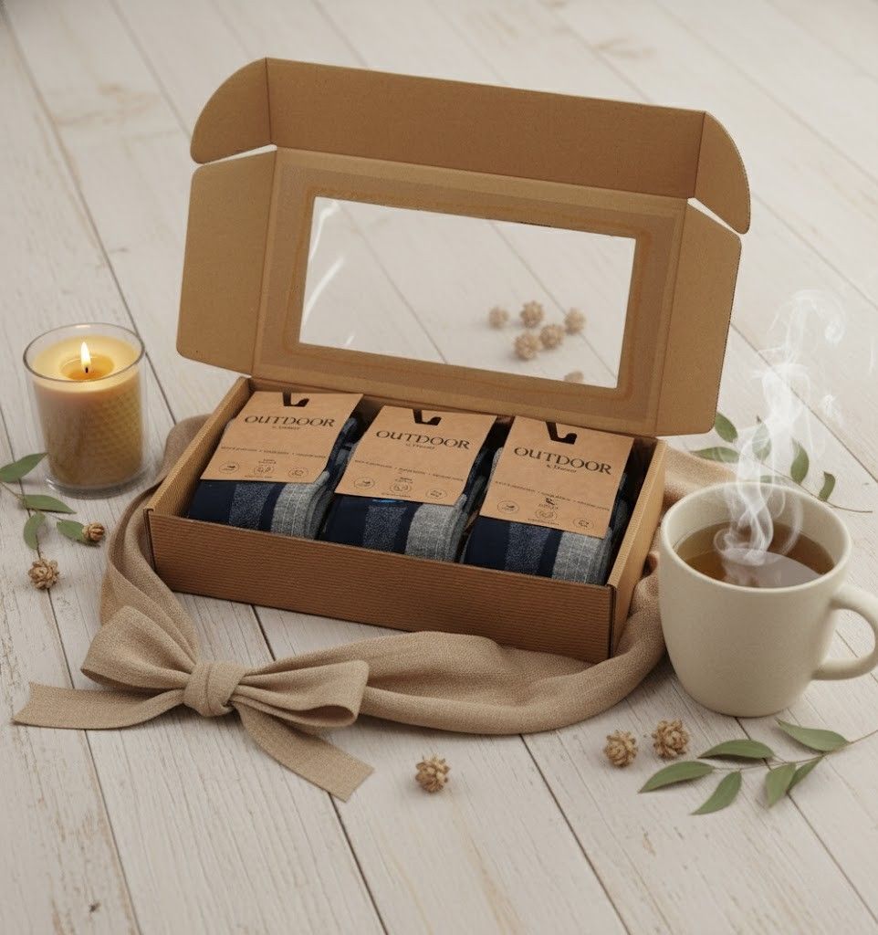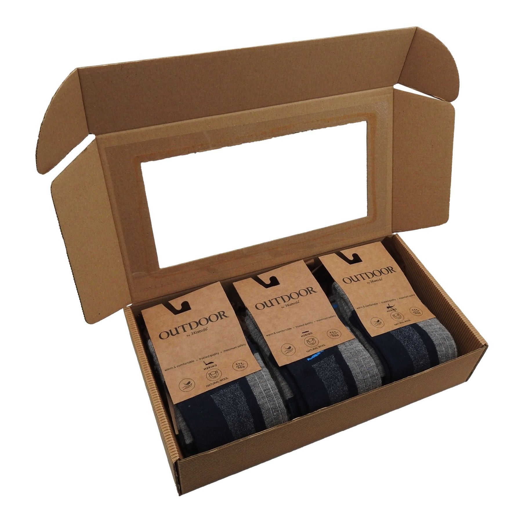 Zestaw prezentowy: 3 pary skarpetek 3Kamido Merino w kolorze szaro-granatowym w pudeEuroku prezentowym CiepEuroe skarpetki 3Kamido Merino Premium sEuro dostEuropne jako piEuroknie zapakowany, gotowy zestaw prezentowy. Zestaw ten idealnie sprawdzi siEuro na wiele okazji, takich jak BoEuroe Narodzenie