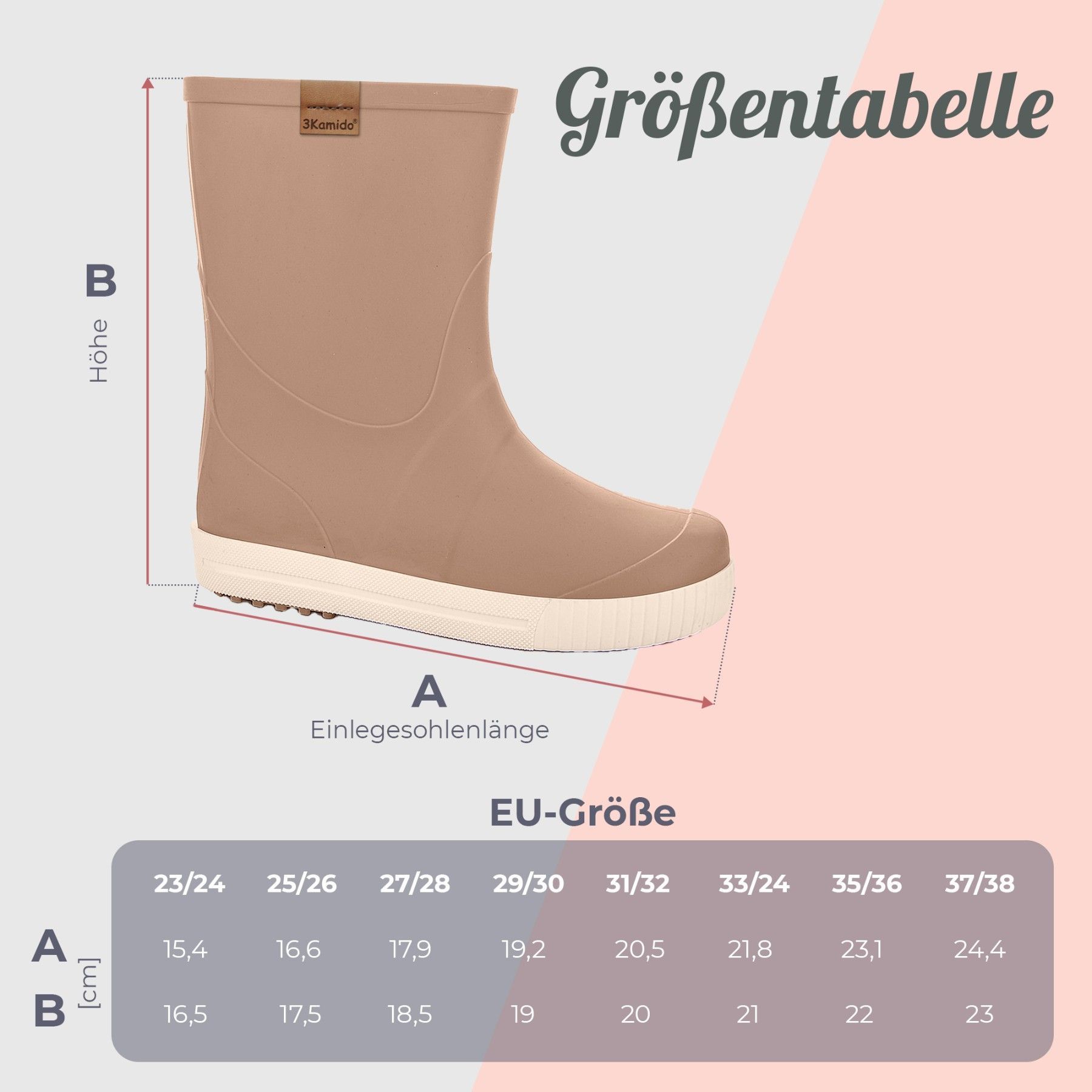 3Kamido GoStyle Kinder Gummistiefel Elegant mit 3M-Reflektorband modisch