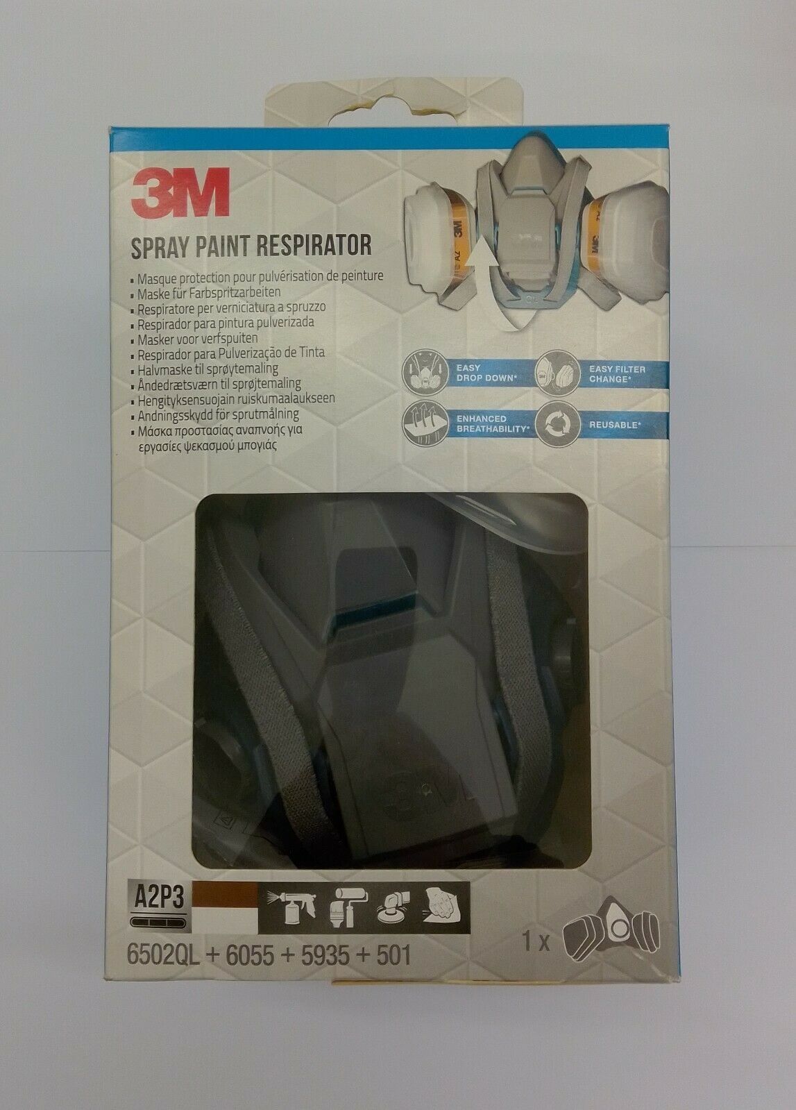 3M 6502QL + 6055 + 5935 + 501 Set Atemschutzmaske Farbspritzmaske A2P3