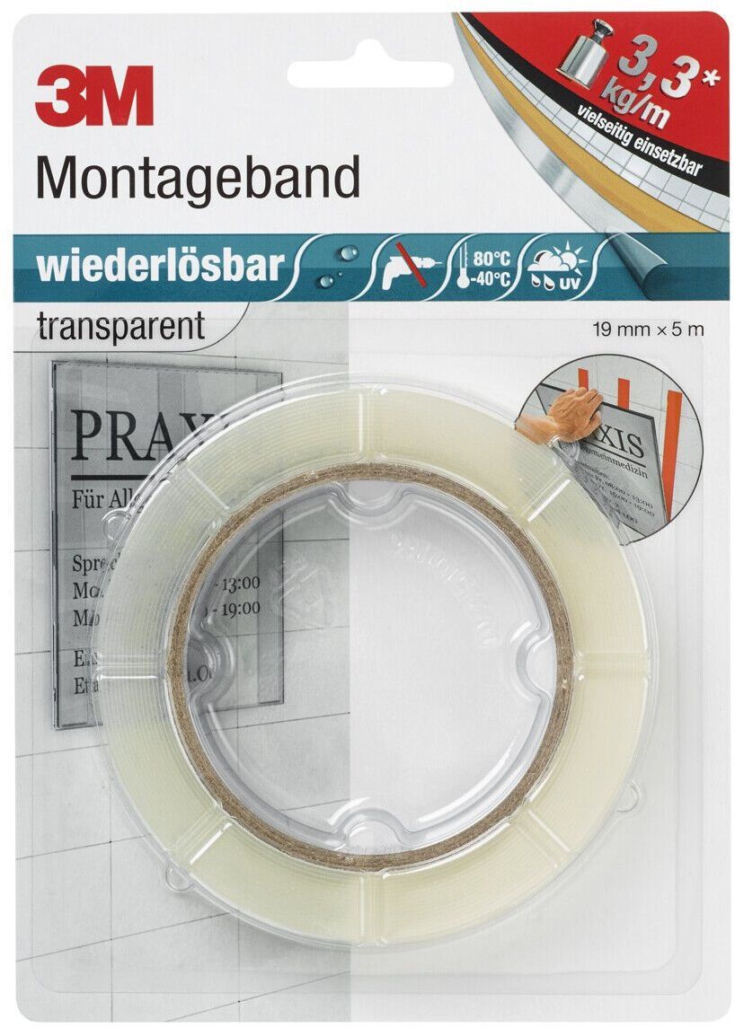 3M 3M 8899195 Montageband Wiederlösbar Befestigungen 19 mm x 5 m transparent