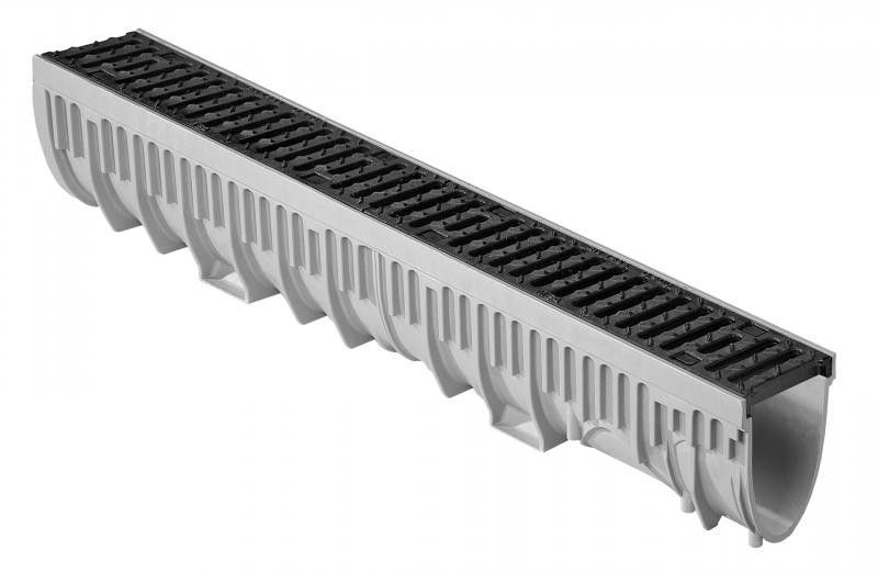 • 1m Mearin Plus 1000 Entwässerungsrinne mit LKW befahrbaren Gußrost Klasse D400