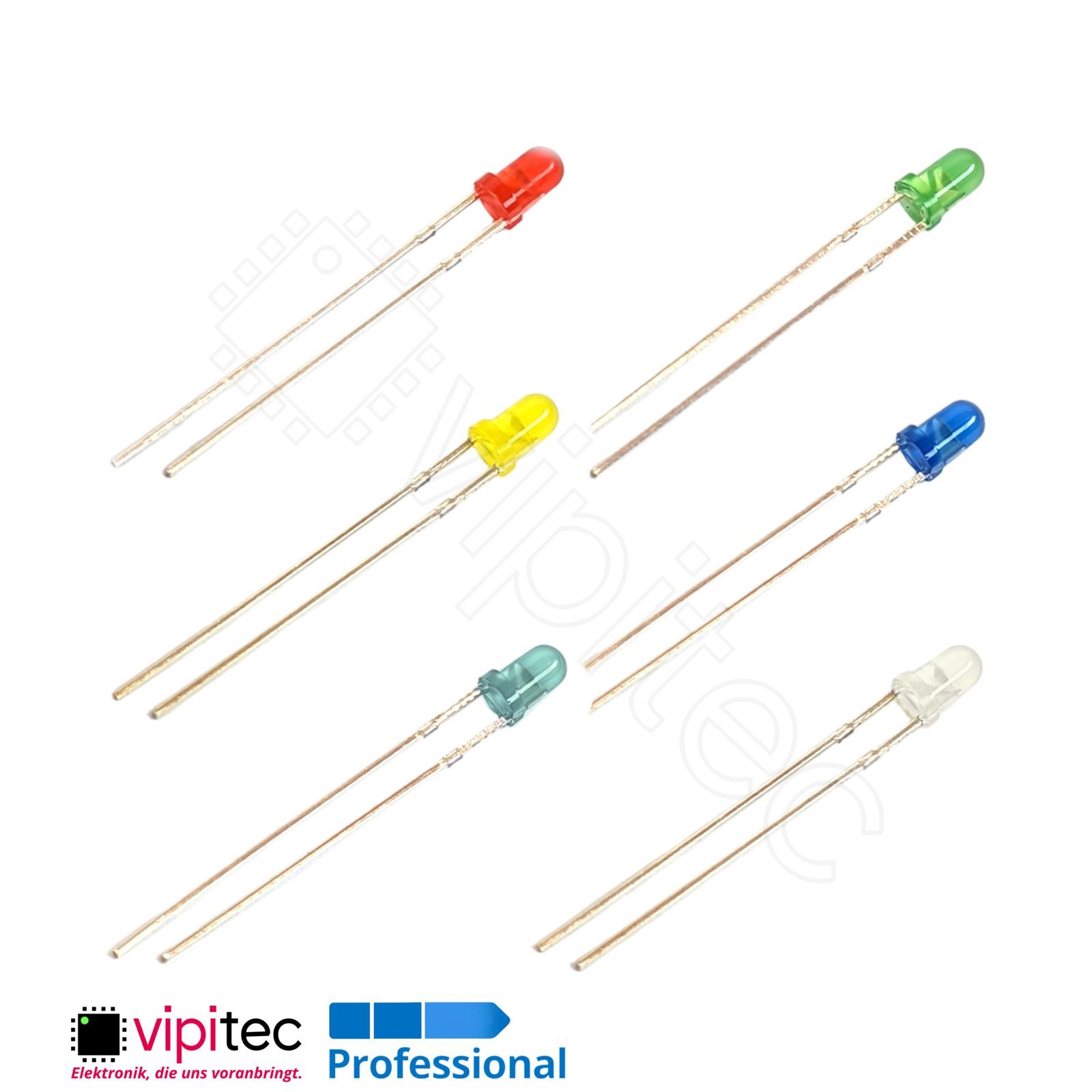3mm LED Auswahl Rot Gelb Grün Blau Weiß THT Diode Diffus Leuchtdiode Sortiment